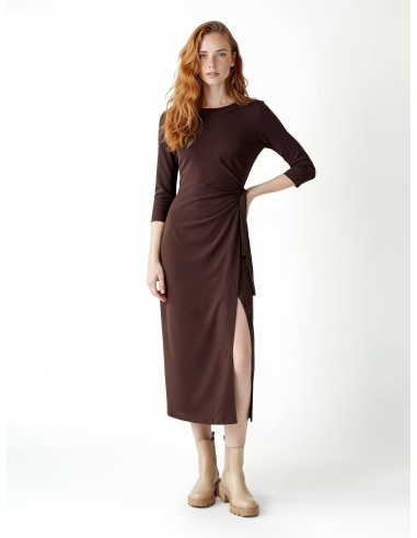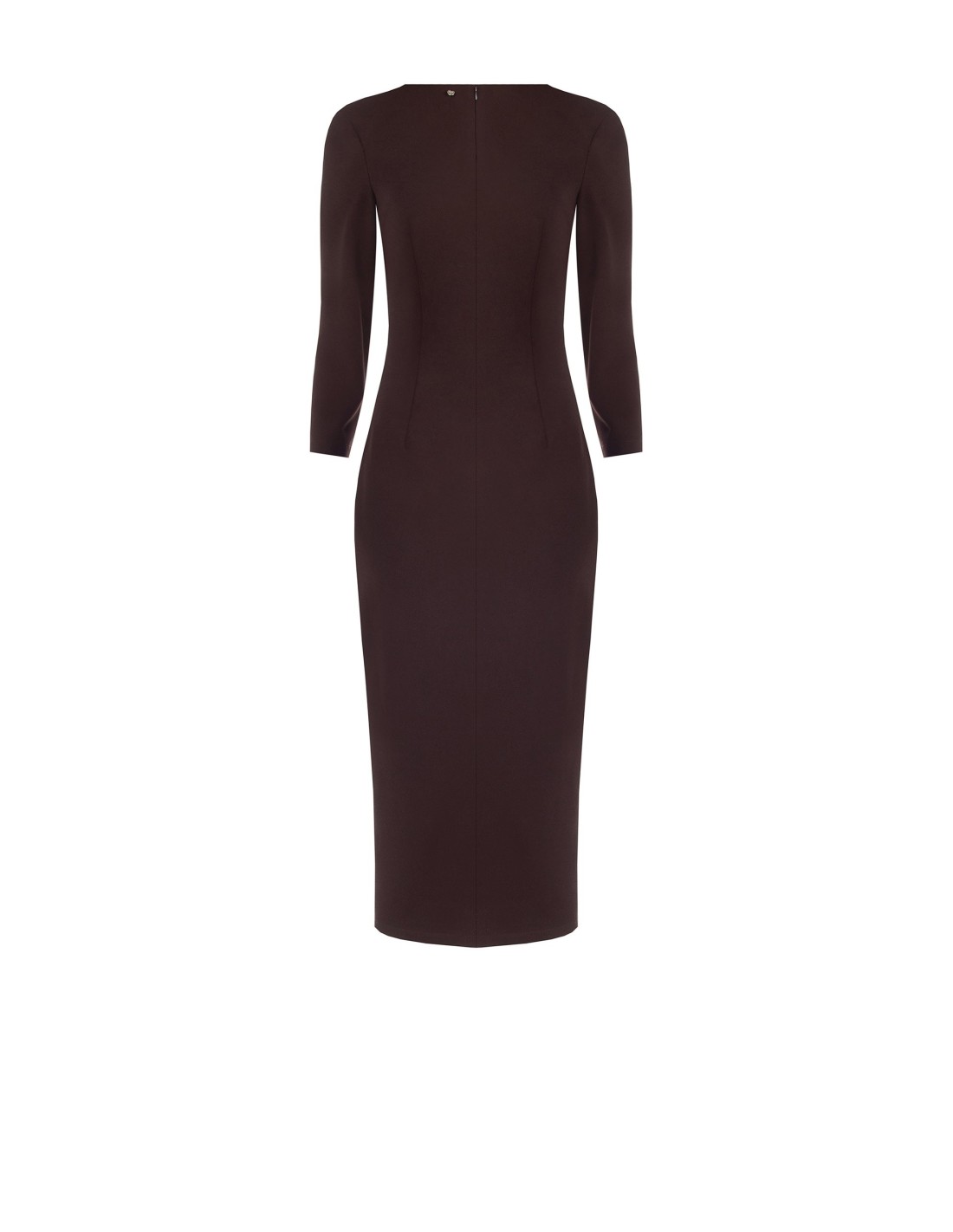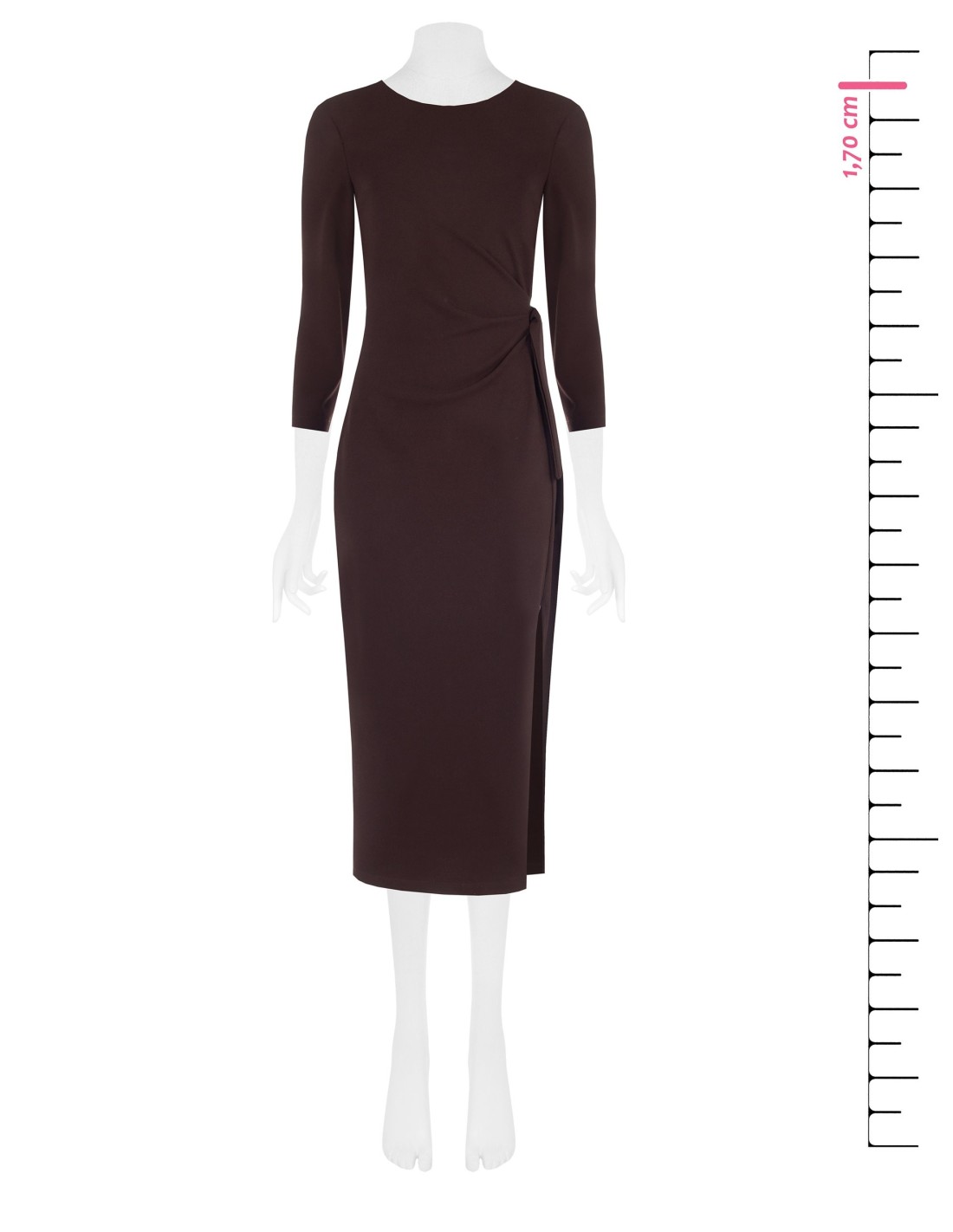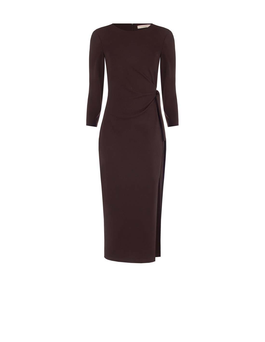 Vestido justo em scuba crepe, com nó num dos lados e fenda frontal Rinascimento