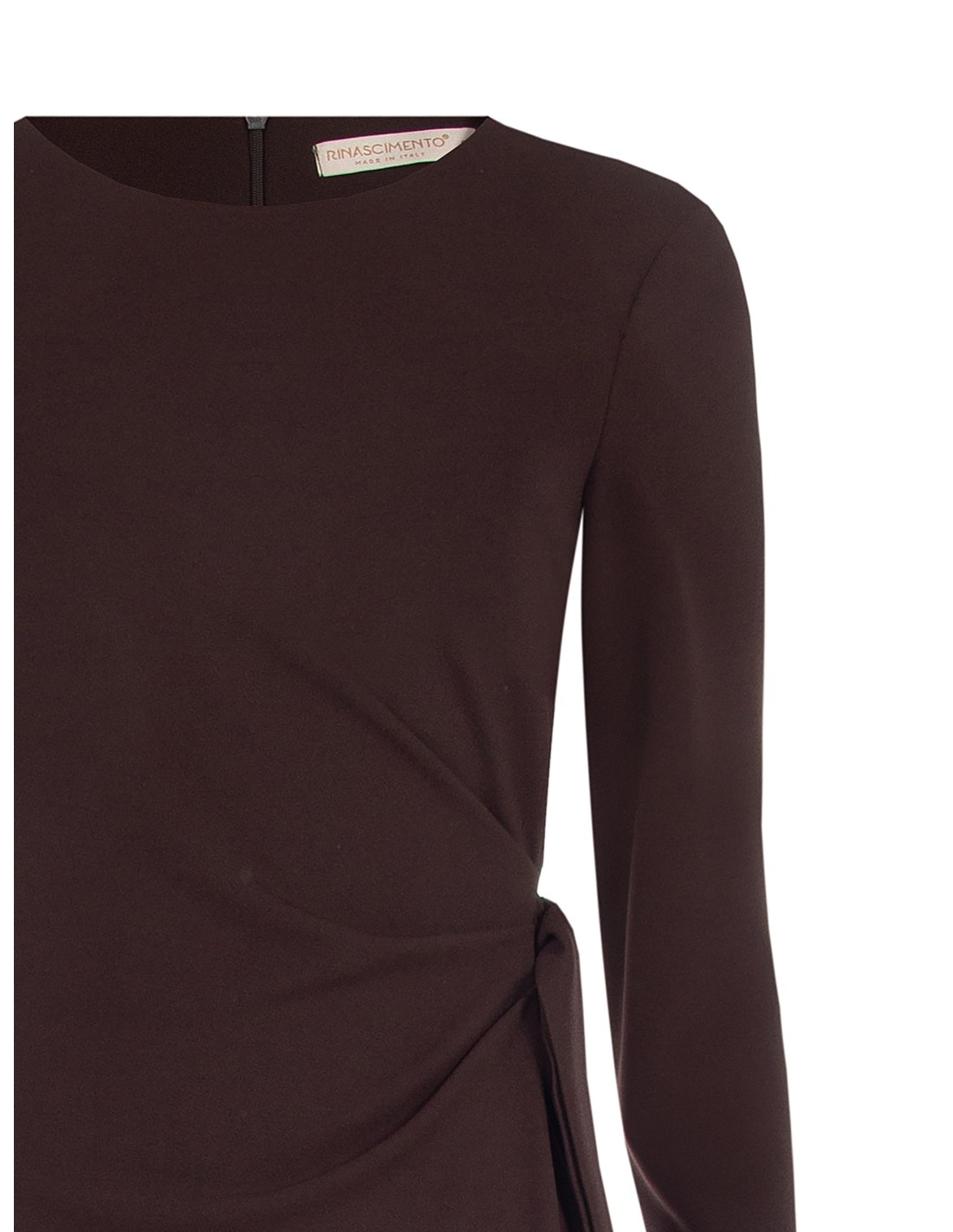 Vestido justo em scuba crepe, atado num lado e com fenda frontal Rinascimento