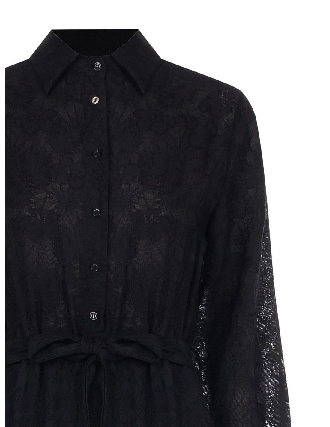 Vestido Chemisier Curto Em Mistura De Viscose Devoré Com Cinto Coordenado Rinascimento