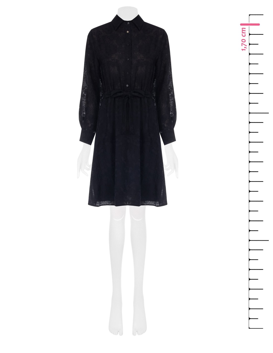 Vestido de corte fluido e feminino, confeccionado em mistura de viscose dévoré com textura leve e refinada. A gola tipo camisa e o cinto para atar valorizam a cintura, enquanto as mangas amplas proporcionam conforto e movimento. Perfeito para escritório, aperitivos e para o dia a dia.