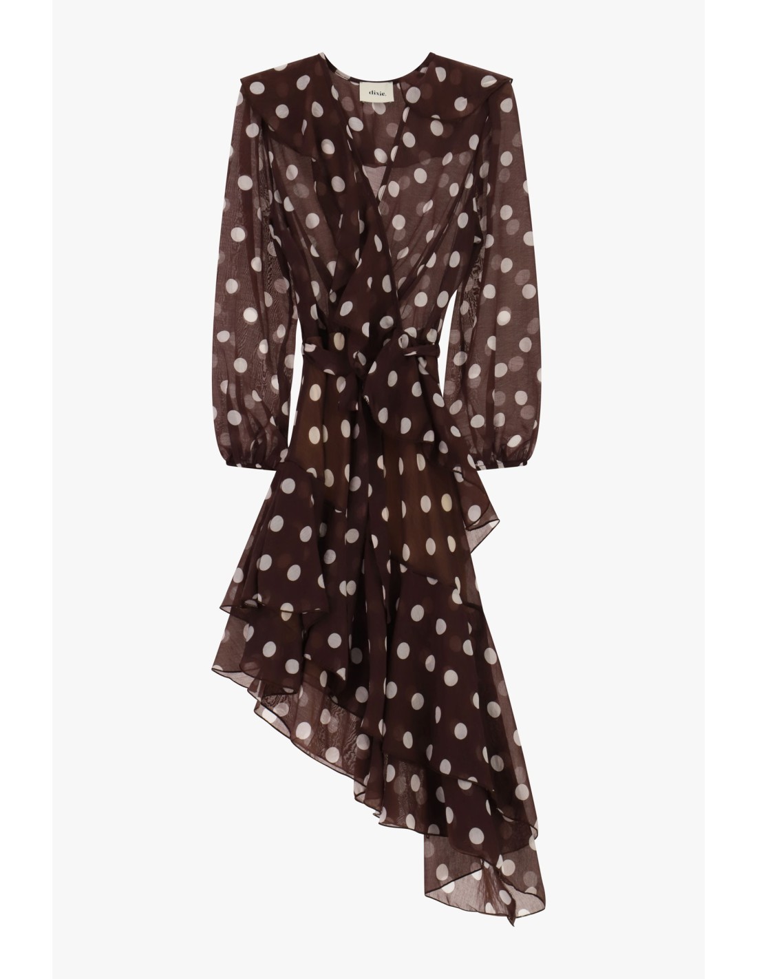 Vestido Curto De Bolinhas Com Folhos Assimétricos Dixie