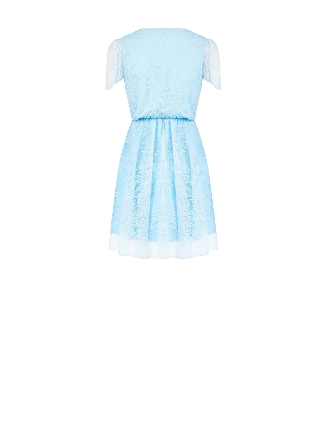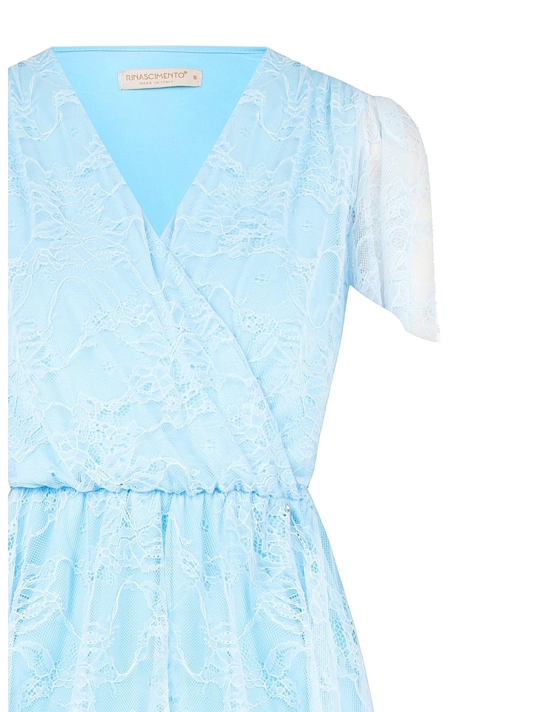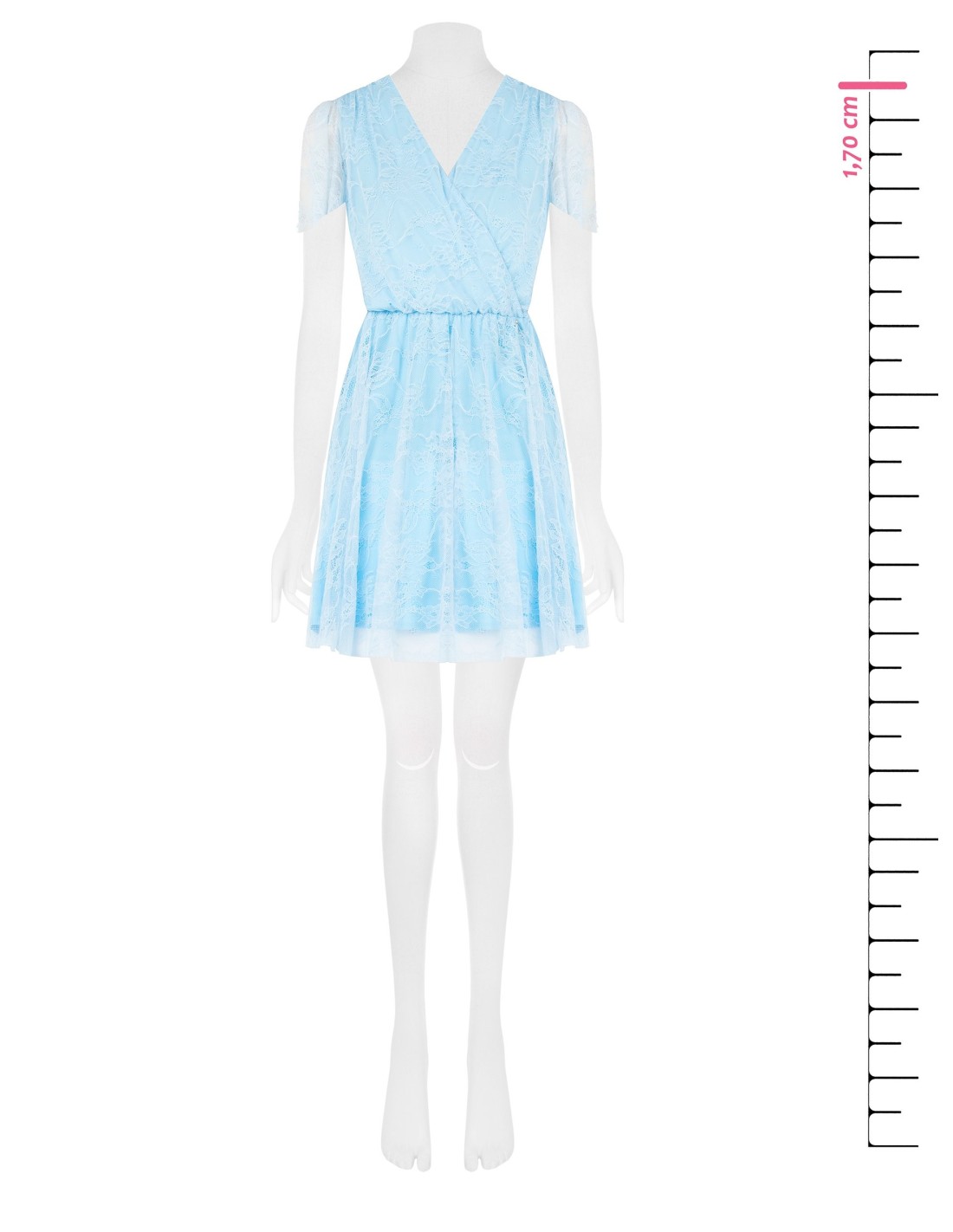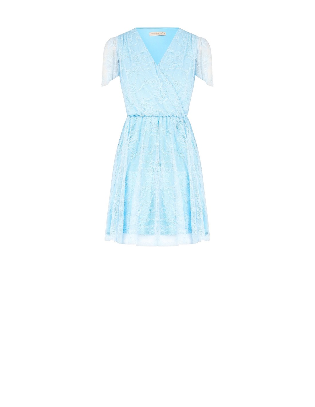 Vestido Curto Com Saia Rodada Em Renda E Decote Em V Cruzado Rinascimento
