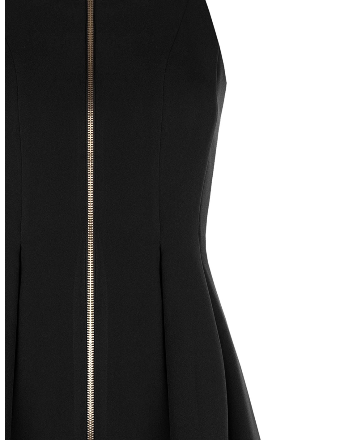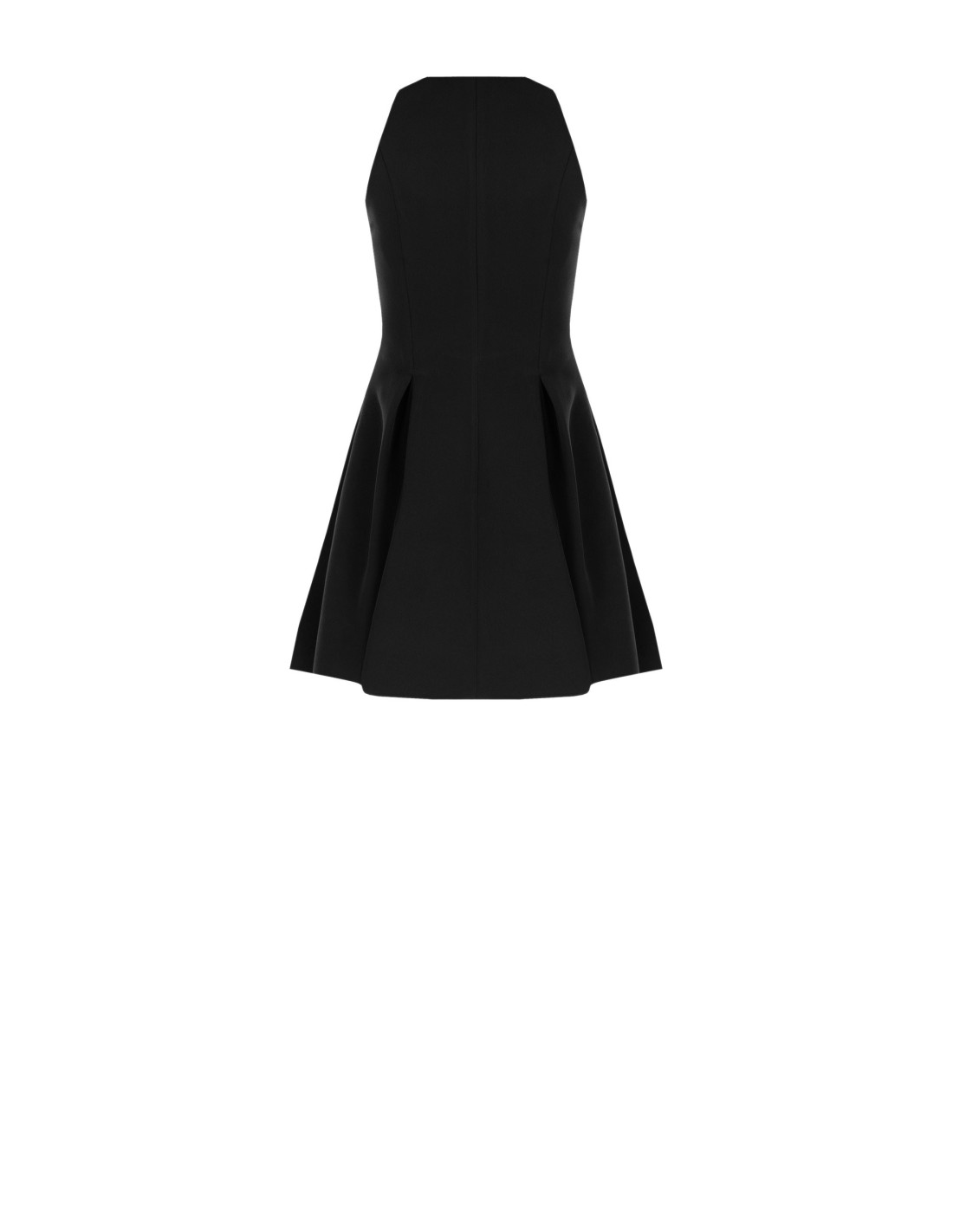 Minivestido evasê Rinascimento em tecido técnico fluido e ligeiramente estruturado, que define a linha da cintura e alonga a silhueta. Decote americano e fecho éclair frontal com detalhe de logótipo metálico para um toque glam discreto. Perfeito para festas e noites especiais.