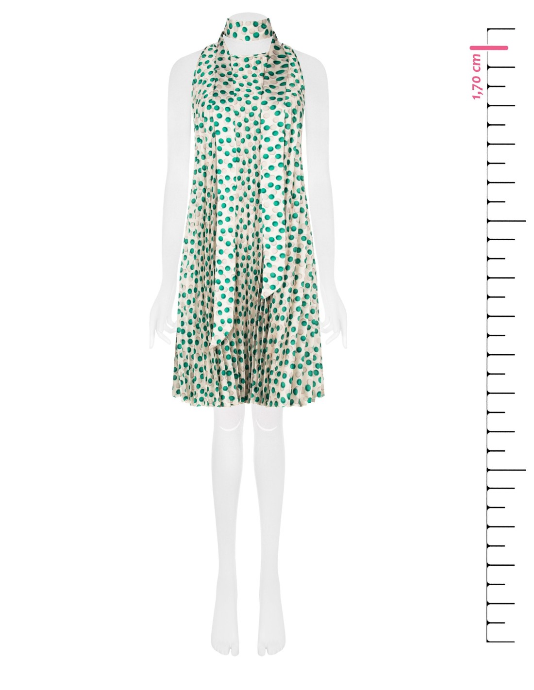 Vestido de corte evasé e fluido, em cetim leve com textura plissada que acaricia a silhueta com conforto e movimento. A gola alta com abertura em gota e a longa echarpe coordenada acrescentam charme e versatilidade. Perfeito para festas, eventos e ocasiões especiais.