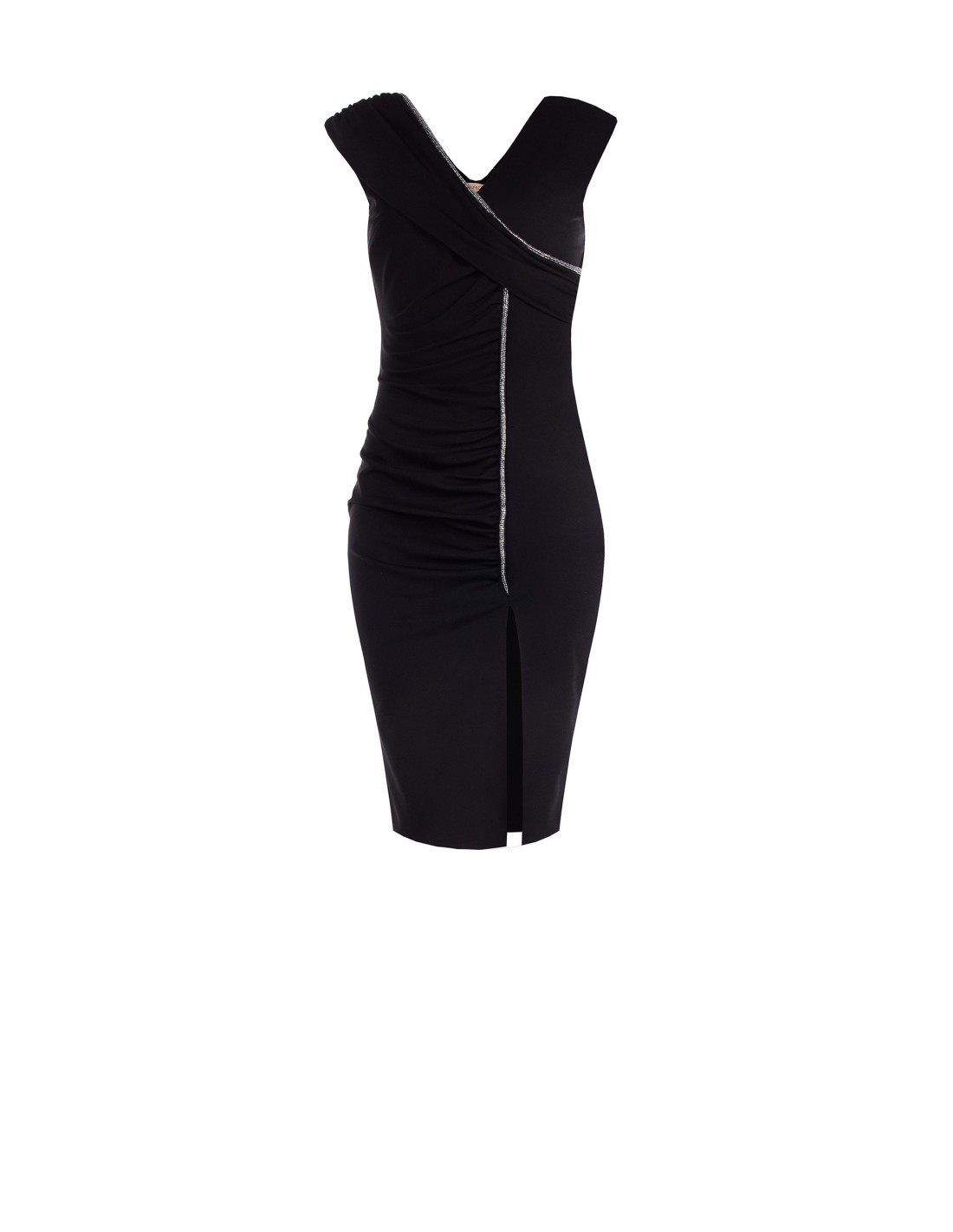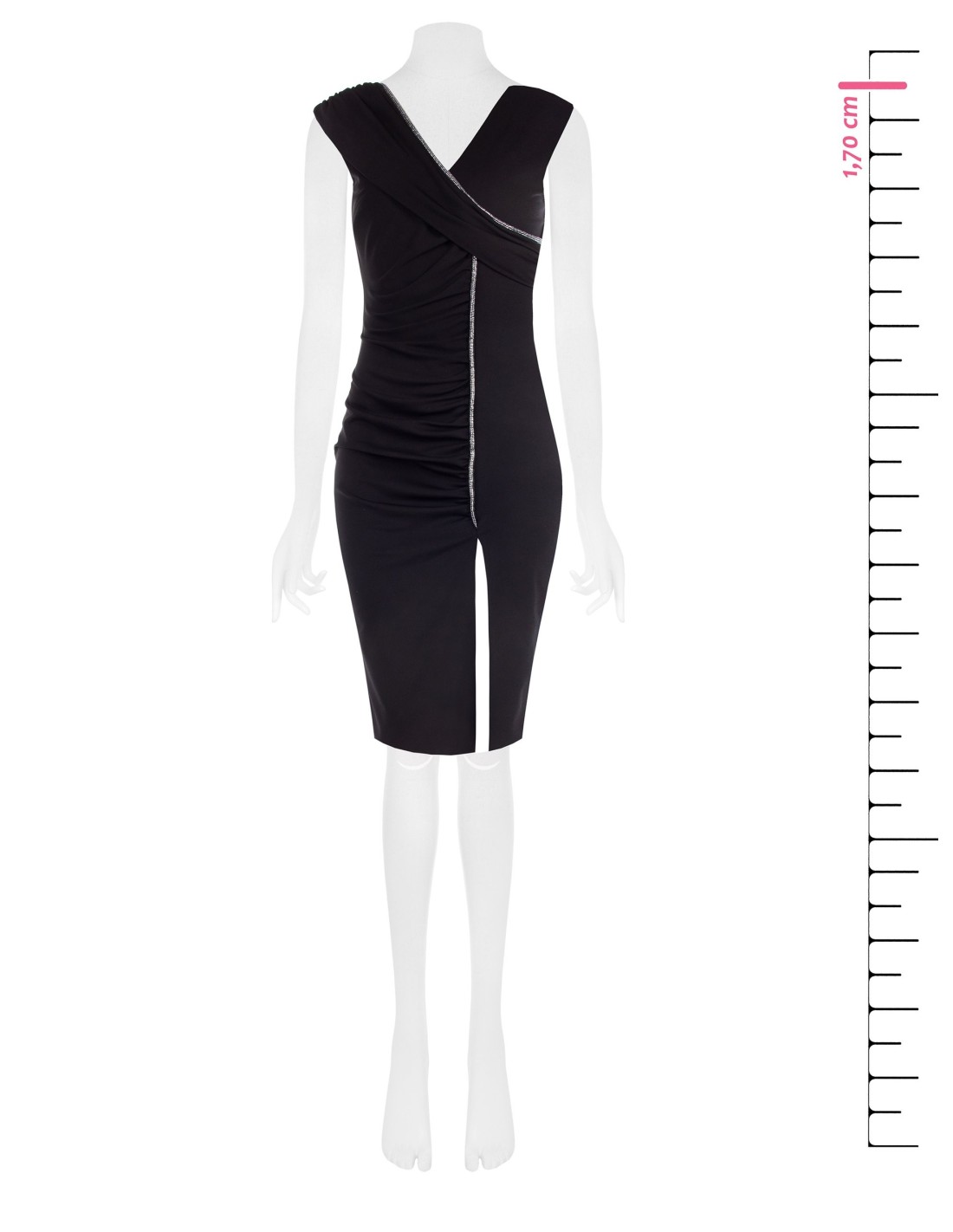 Vestido Curto Tubinho Drapeado Com Detalhes Em Strass E Alças Rinascimento