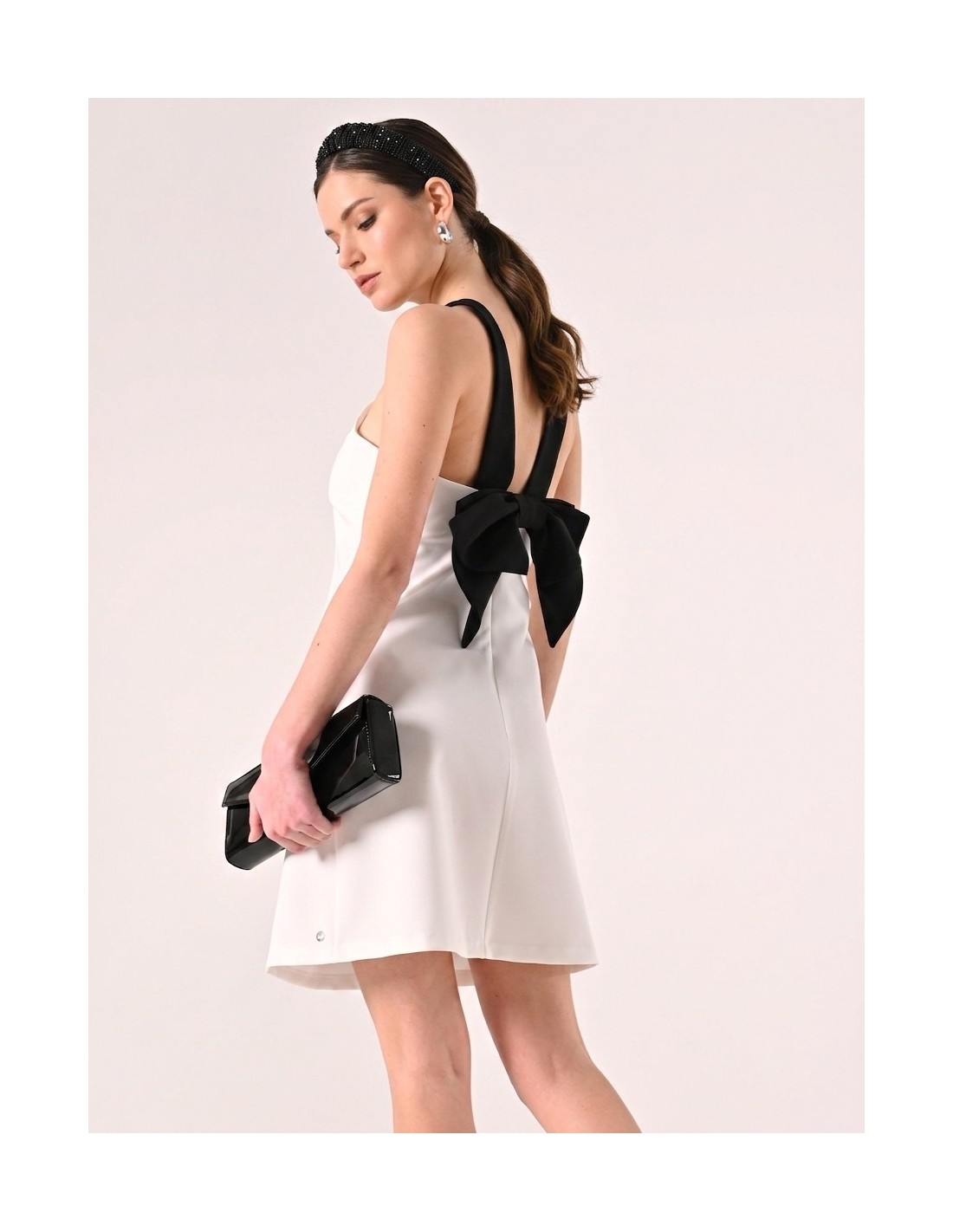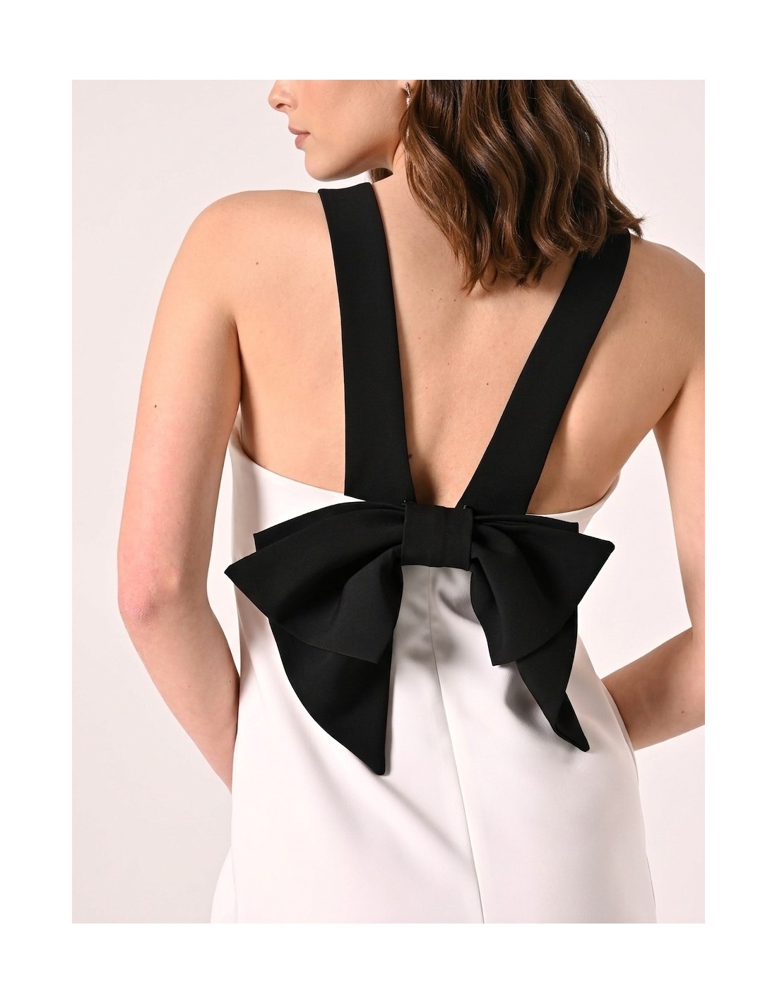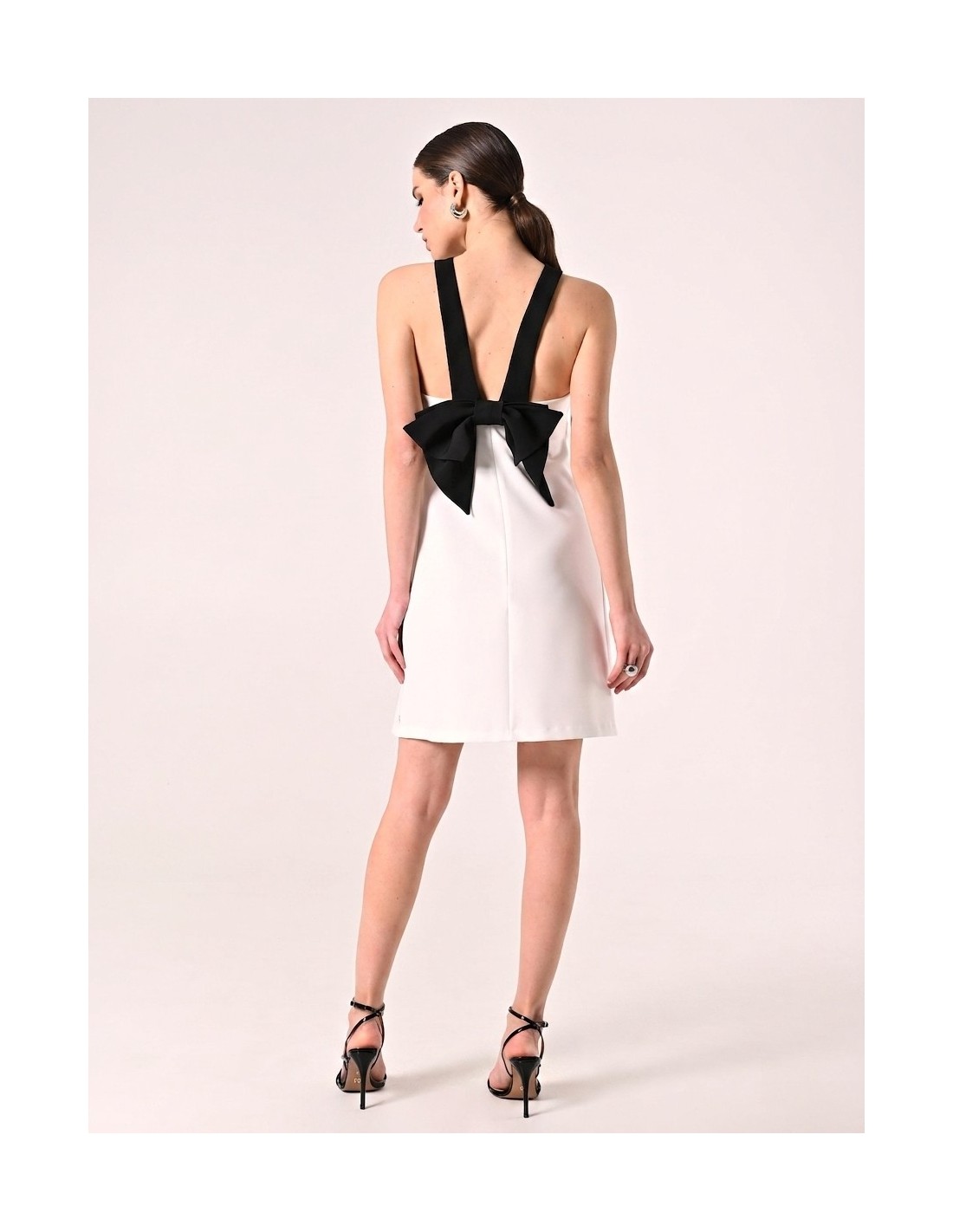 Vestido Curto Bicolor Em Tecido Técnico Com Laço Atrás Rinascimento