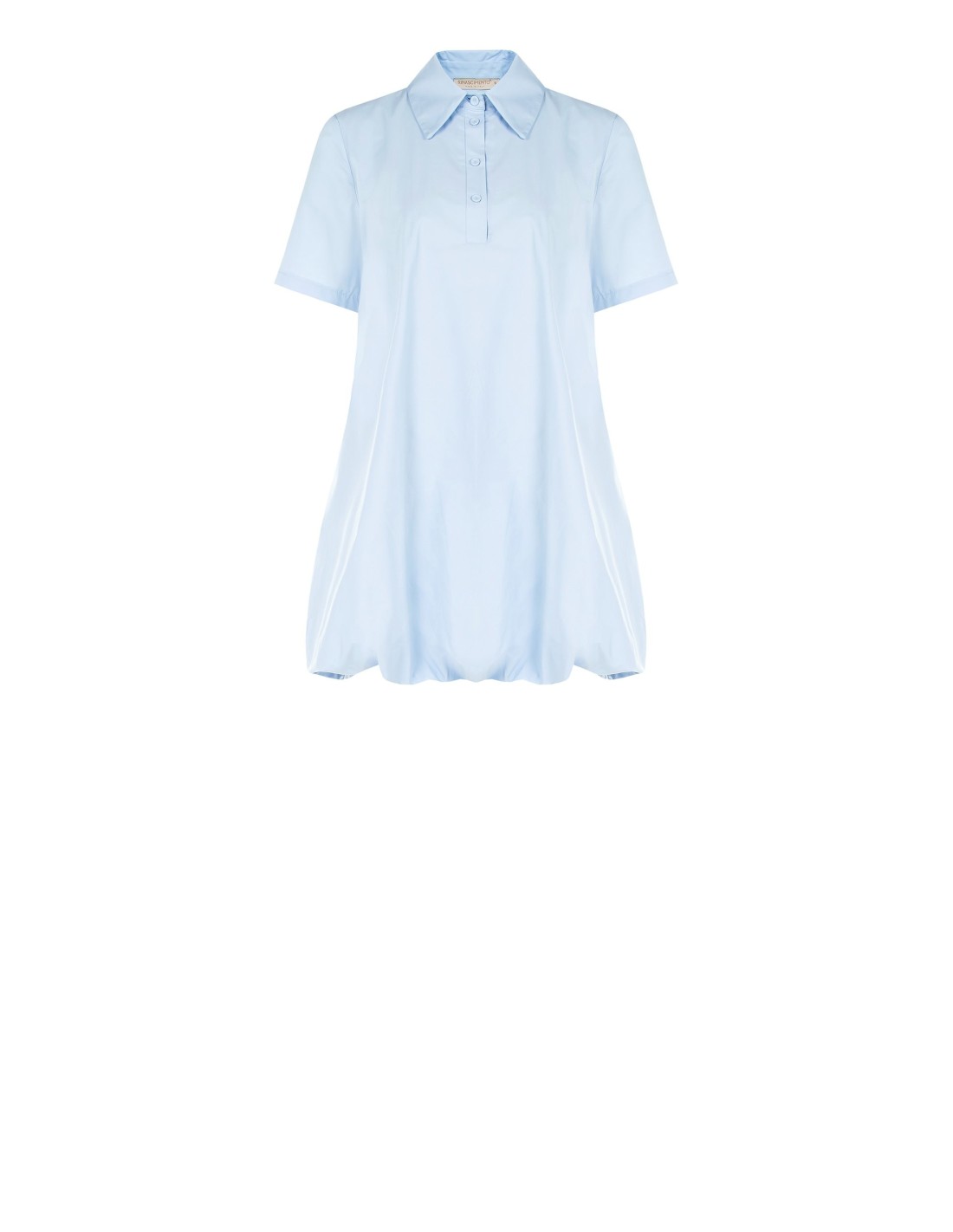Vestido curto de corte suave e evasê, em algodão com textura fresca e leve, que acompanha os movimentos com conforto. A gola ampla, o fecho com botões e a bainha balloon com bolsos desenham uma silhueta feminina e versátil, perfeita para o escritório e para o dia a dia.