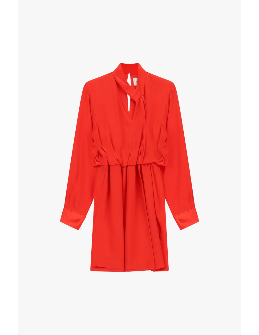 Vestido curto com decote cruzado e mangas compridas Dixie