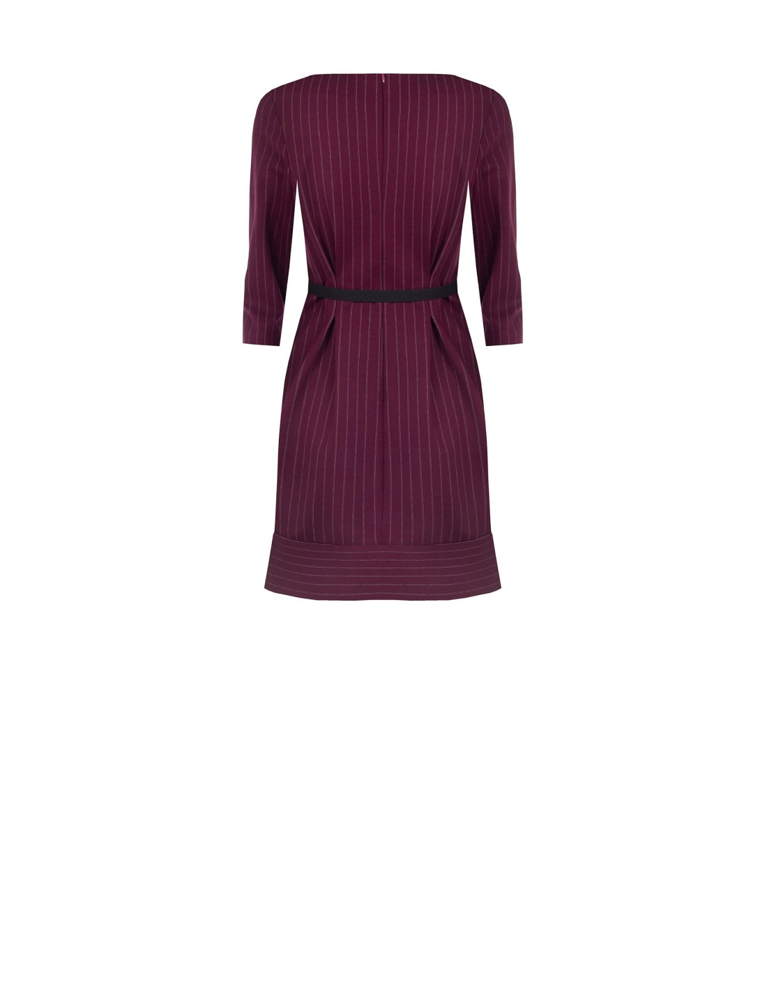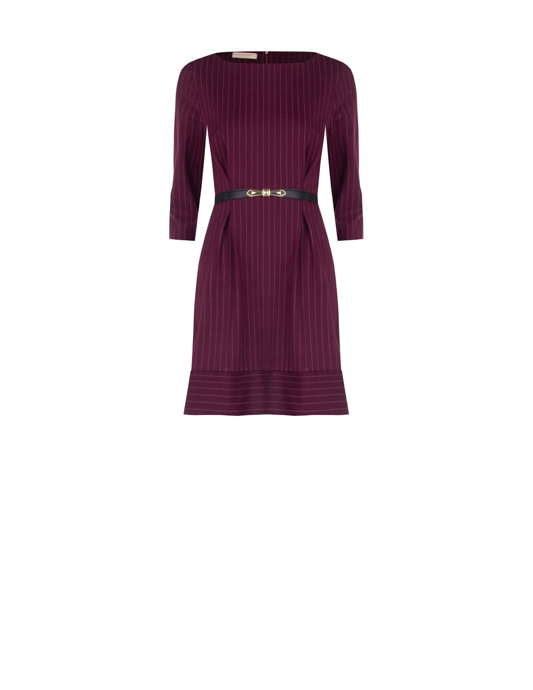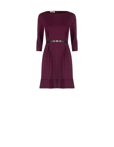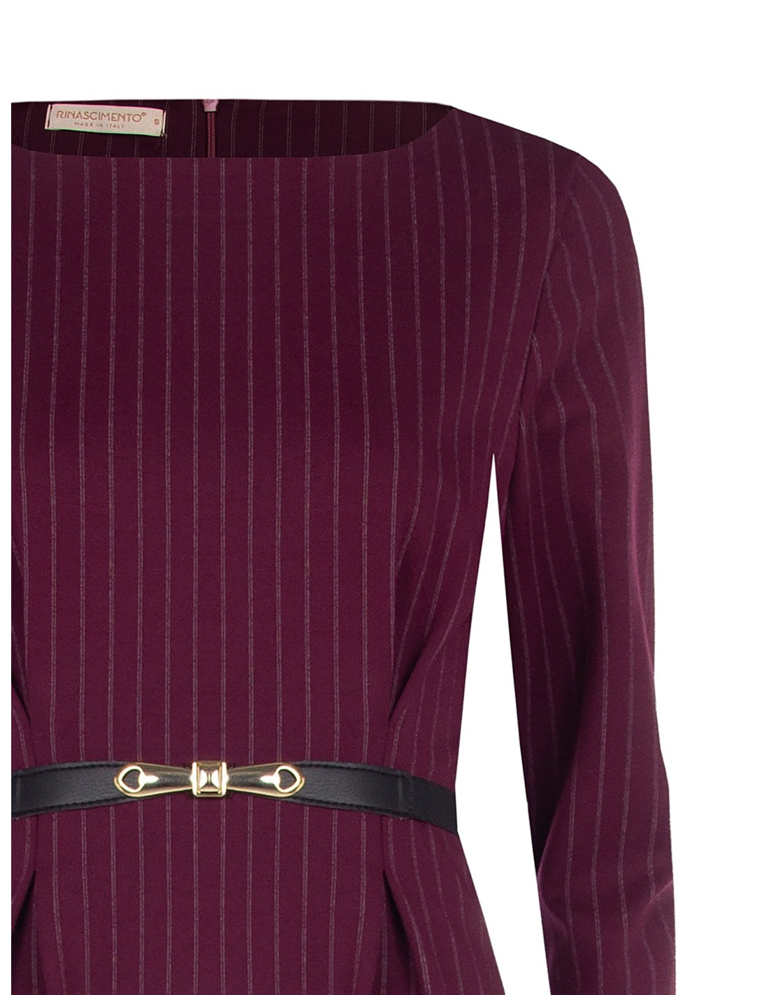 Rinascimento assina um mini com corte evasé que afina a cintura. Confeccionado em Punto Milano riscado, elástico e confortável, valoriza com decote barco e cinto elástico com detalhe metálico. Mangas 3/4 e pregas de alfaiate para uma silhueta limpa. Perfeito para o escritório e para after-work.