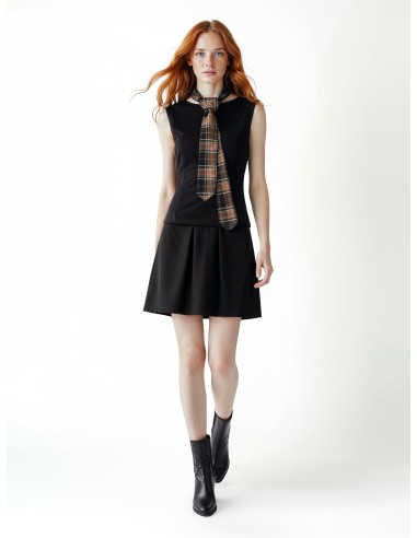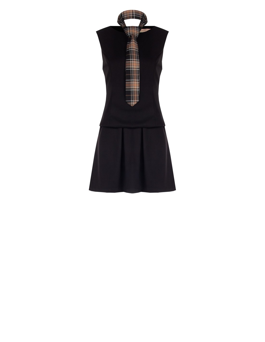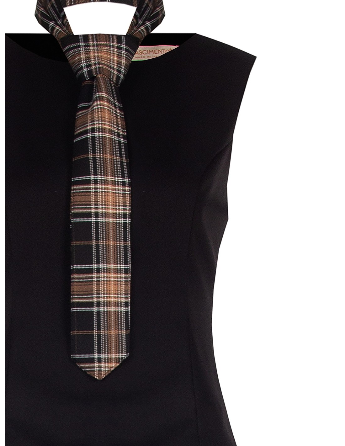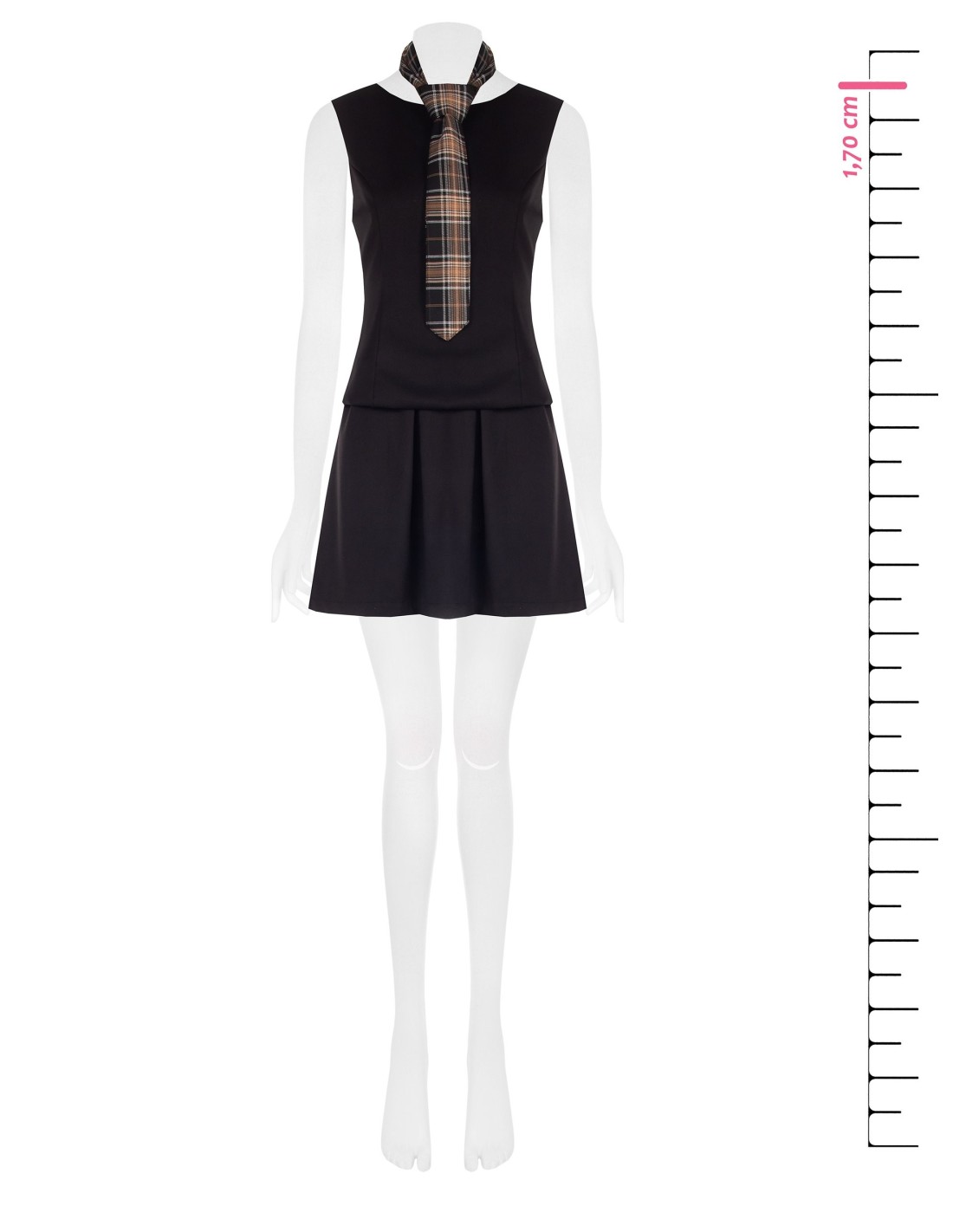 Vestido Curto Em Tecido De Poliviscose Com Gravata Xadrez Removível Rinascimento