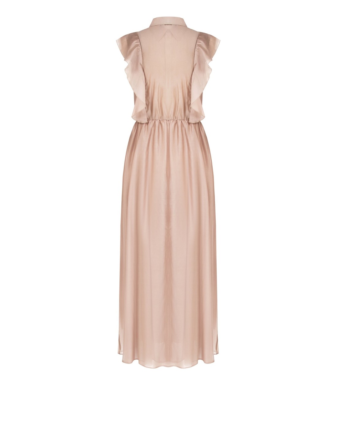 Vestido longo evasé em lyocell ultraleve com folhos e detalhes vazados Rinascimento