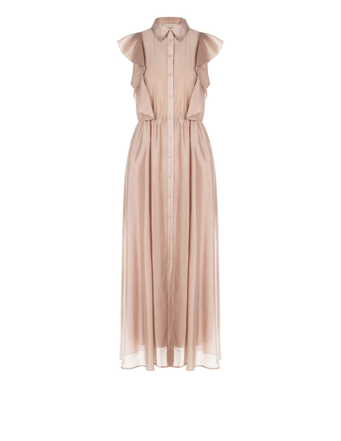 Vestido chemisier longo de linha fluida e feminina, em lyocell ultraleve com textura macia e arejada. A cintura elasticizada valoriza a silhueta com conforto, enquanto folhos nos ombros e fecho com botões adicionam movimento. Perfeito do escritório a eventos do dia para a noite.