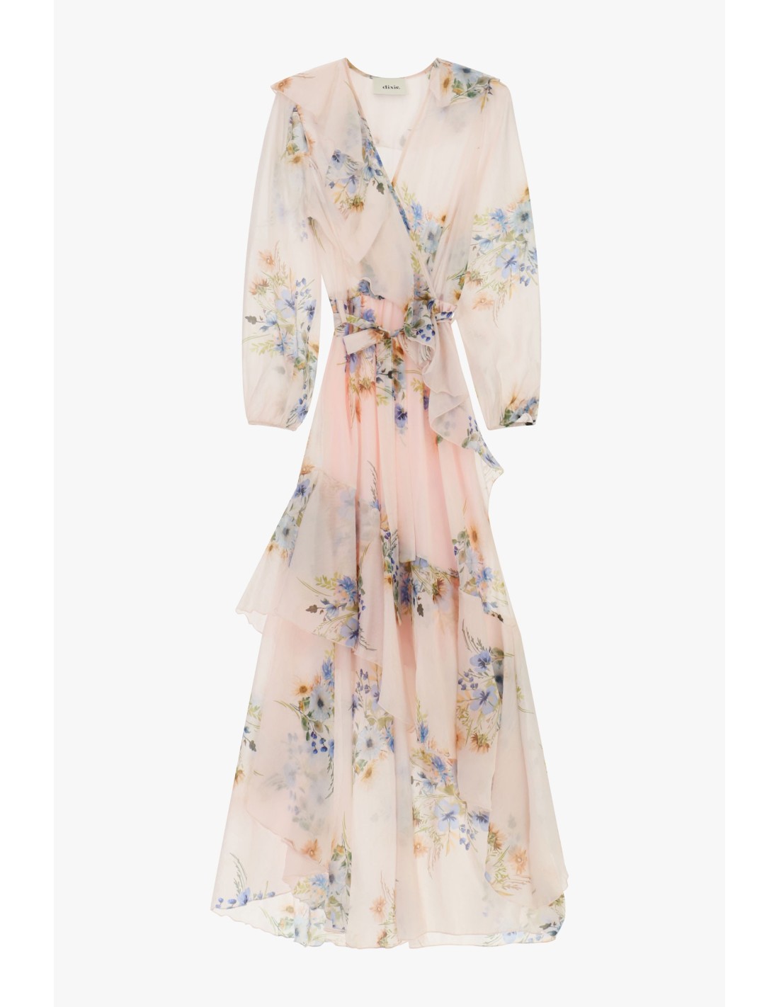 Este vestido longo com estampado floral combina linhas suaves e detalhes como o laço na cintura e os delicados folhos na bainha. As mangas amplas e o corte envolvente valorizam a silhueta, perfeito para passeios ao ar livre ou ocasiões especiais. Fácil de vestir no dia a dia, com aquele toque feminino que não passa despercebido.