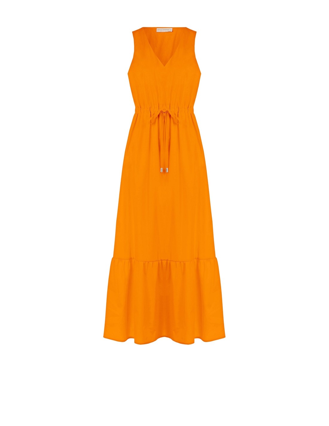 Vestido de linha fluida e corte macio, em algodão leve com uma textura fresca e agradável na pele. O decote em V e o cordão na cintura definem a silhueta com conforto, enquanto o volante na bainha adiciona movimento. Perfeito da manhã à noite, na cidade, no escritório ou no tempo livre.
