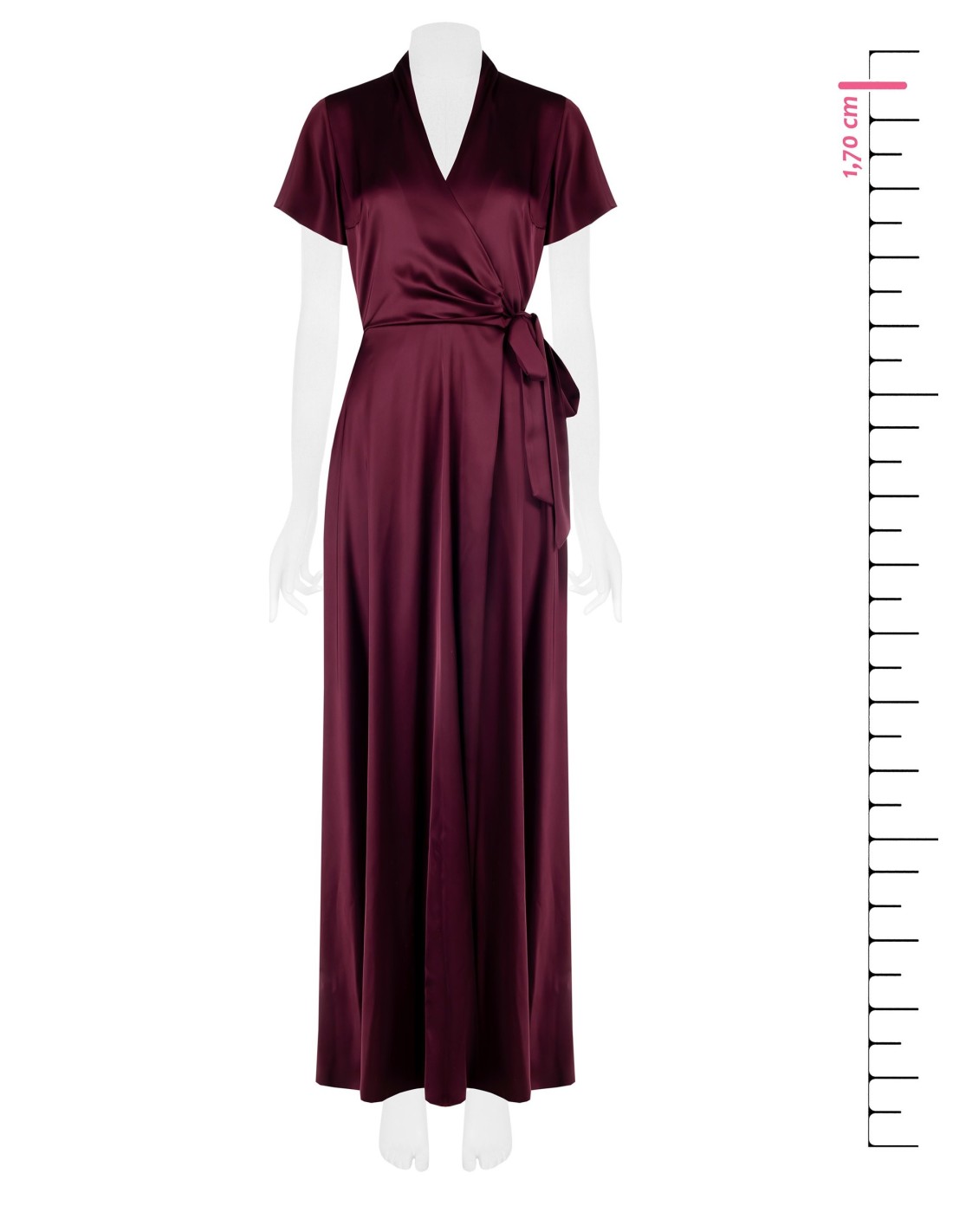 Vestido longo Rinascimento em tecido acetinado fluido, com corte suave que acaricia as formas e cinto para atar que realça a cintura. Decote em V cruzado e detalhe em gota nas costas. Perfeito para cerimónias, festas e eventos noturnos.