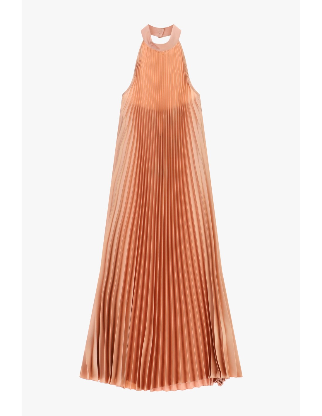 Deixa‑te conquistar pelo movimento leve deste vestido longo plissado com decote halter e fecho posterior. O corte fluido acompanha os teus movimentos, perfeito para te sentires especial em qualquer ocasião, desde uma cerimónia até um passeio de verão. Um pormenor que dá imediatamente carácter e que se combina facilmente com os teus acessórios preferidos.