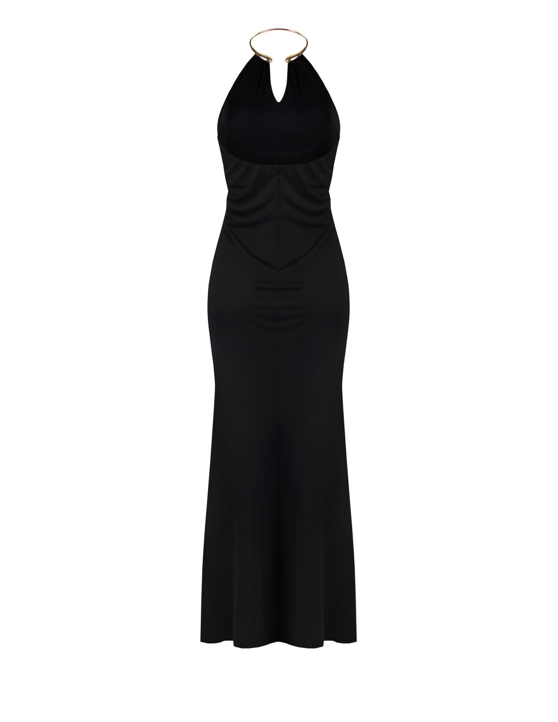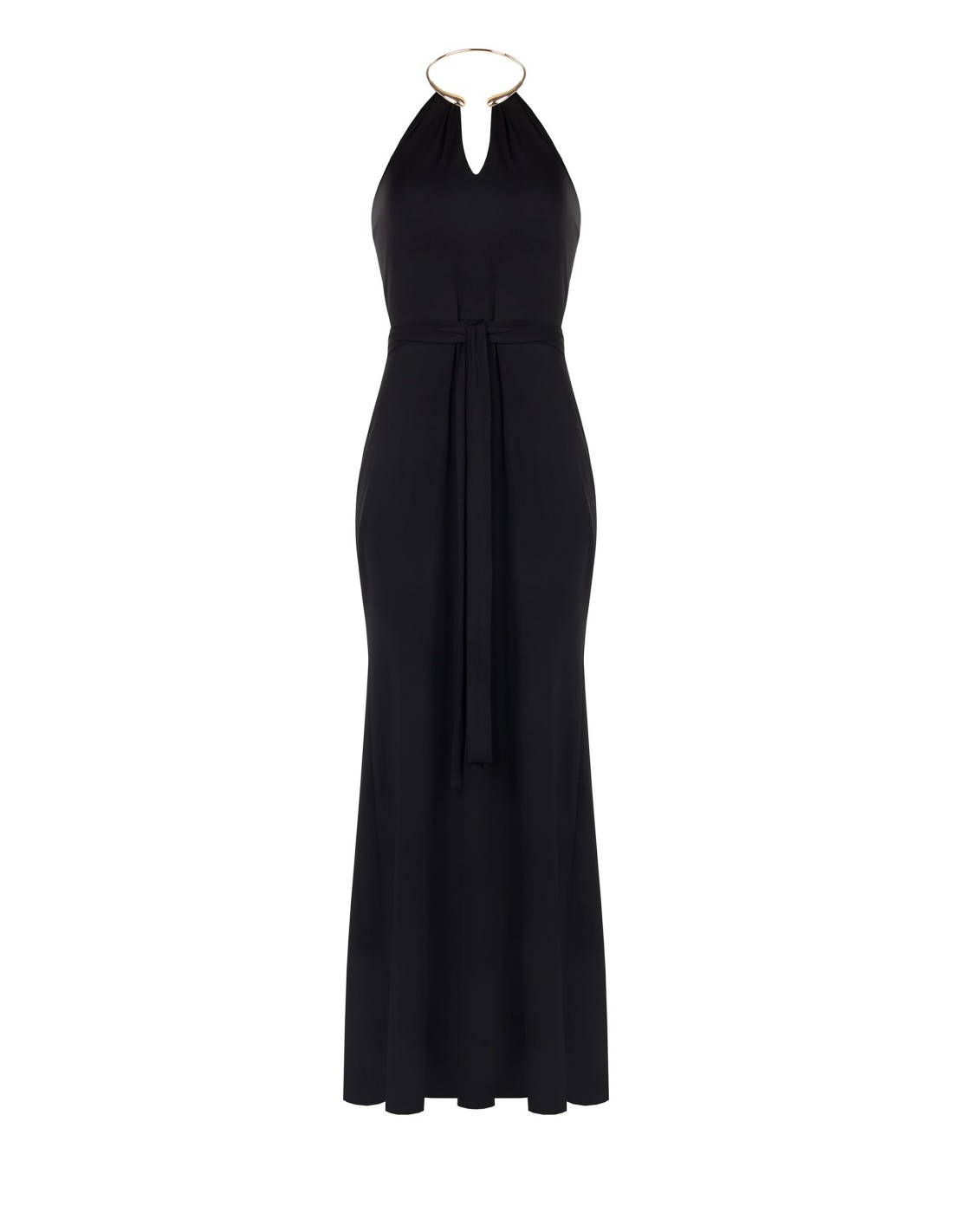 Vestido Longo Fluido Em Malha Com Colar Integrado E Cinto Rinascimento