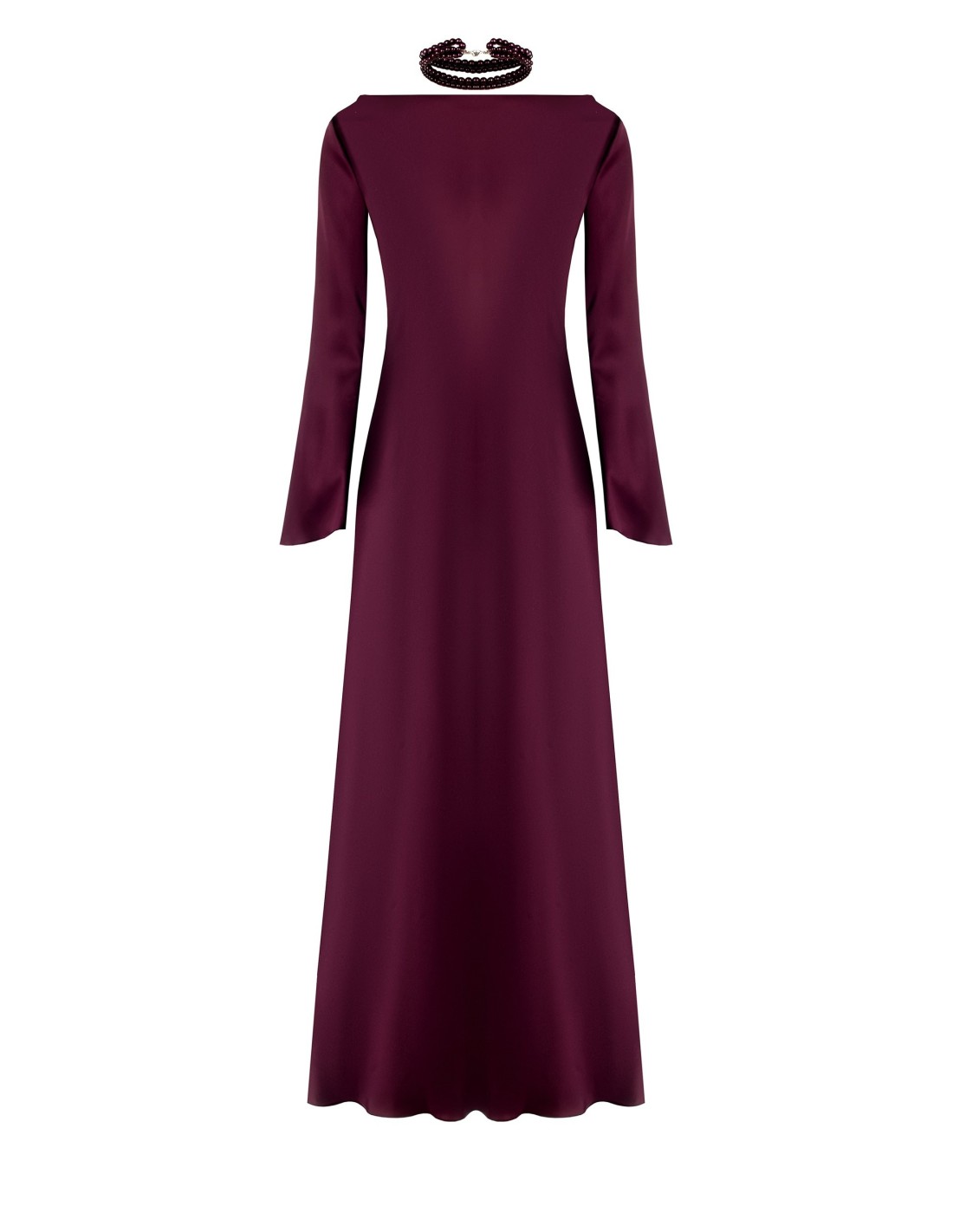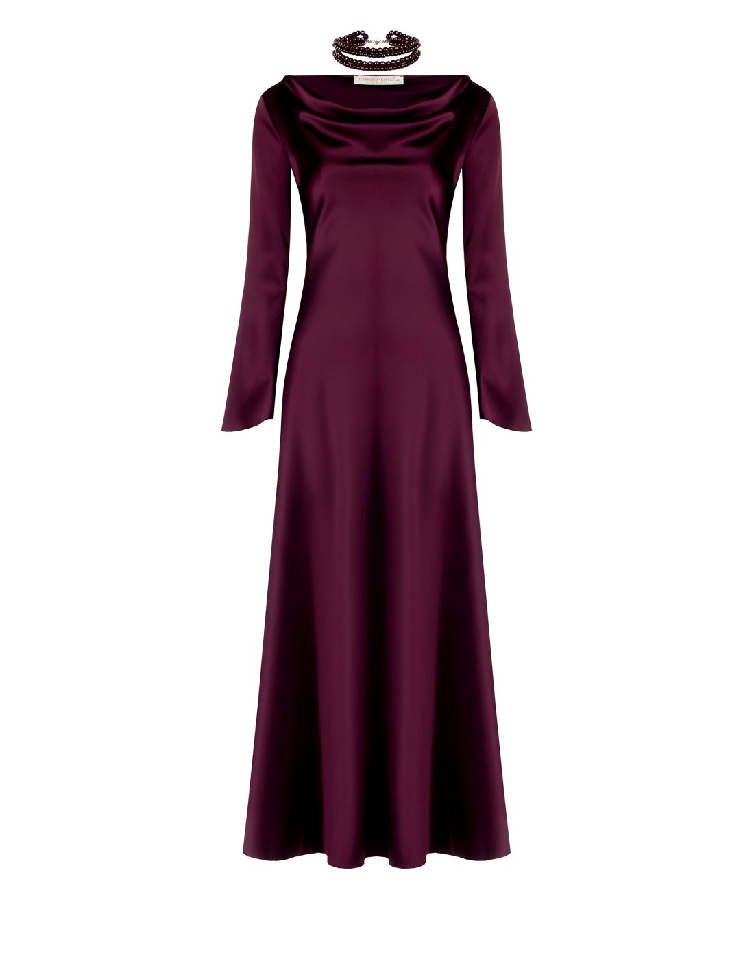 Vestido Longo Em Cetim Com Mangas 3/4 Rinascimento
