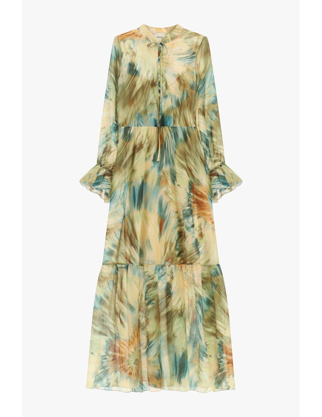 Abito Lungo Stampa Acquerello Con Maniche Arricciate Dixie - Vestit...