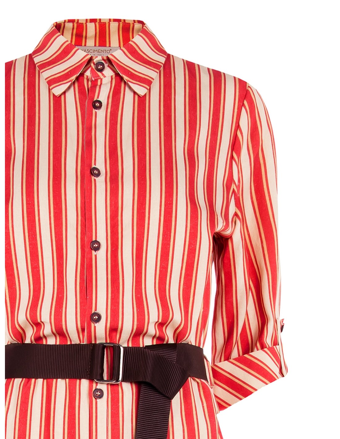 Vestido Midi Chemisier Em Mistura De Viscose E Linho Com Cinto Combinado Rinascimento