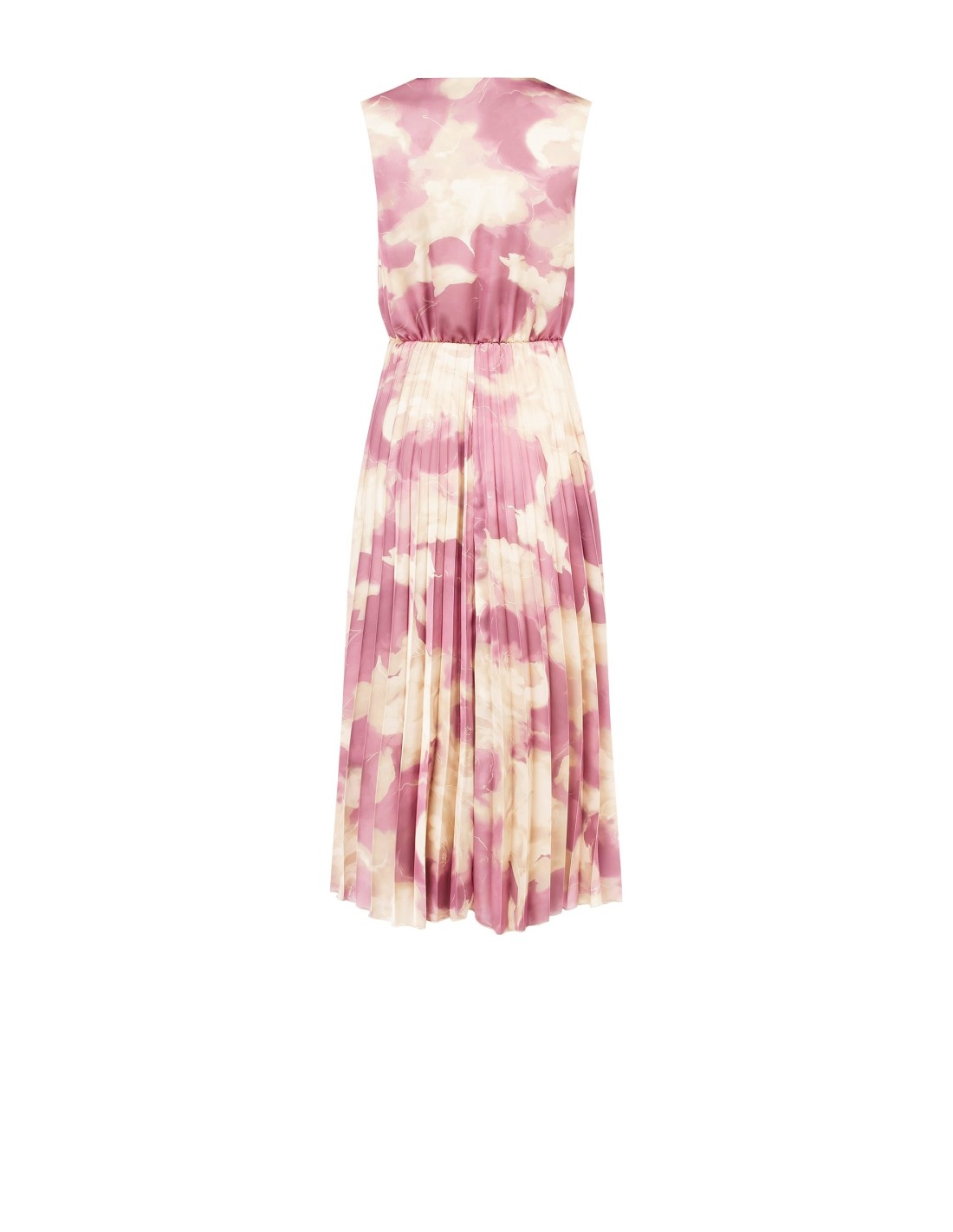 Vestido midi em cetim plissado com padrão floral degradé e decote em V cruzado Rinascimento