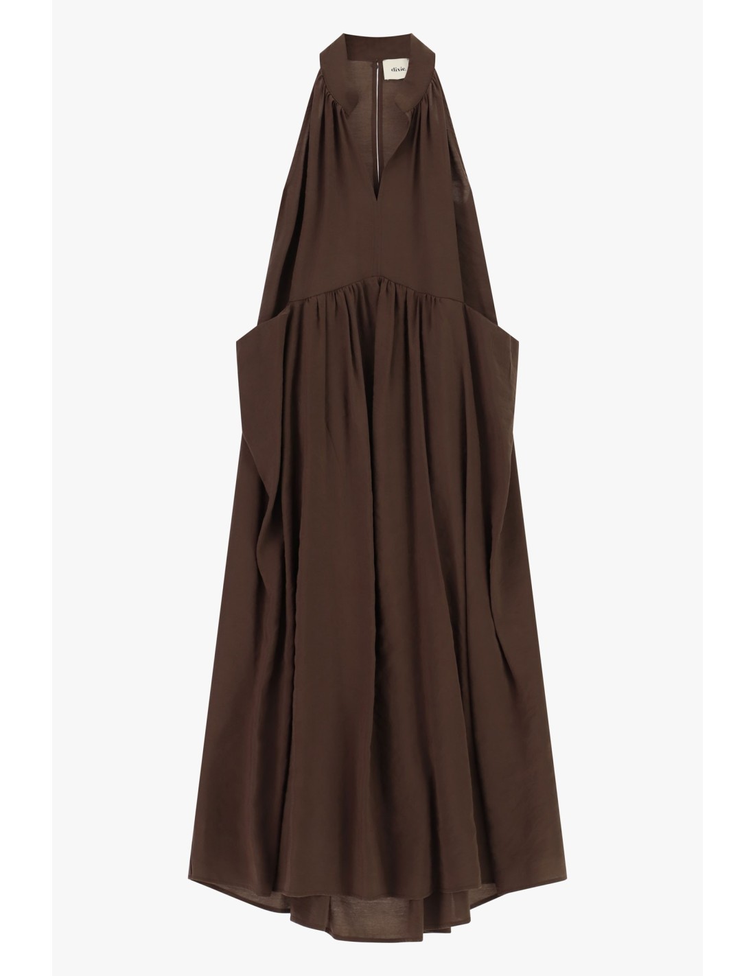 Linhas suaves e arejadas para este vestido midi sem mangas, com decote em V delicadamente drapeado e cintura ligeiramente marcada que realça a silhueta. A saia ampla confere movimento enquanto o corte fluido se adapta perfeitamente a qualquer ocasião quotidiana. Ideal também com sandálias para os dias mais quentes.
