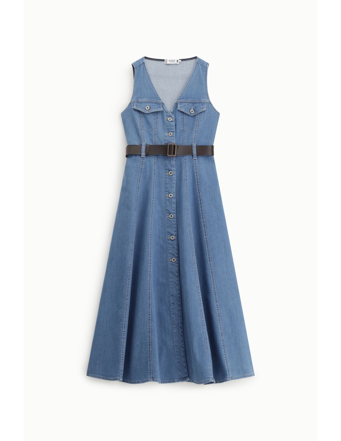 Vestido Midi Evasê Com Bolsos Frontais E Cinto Please
