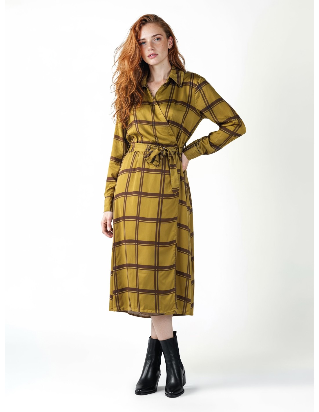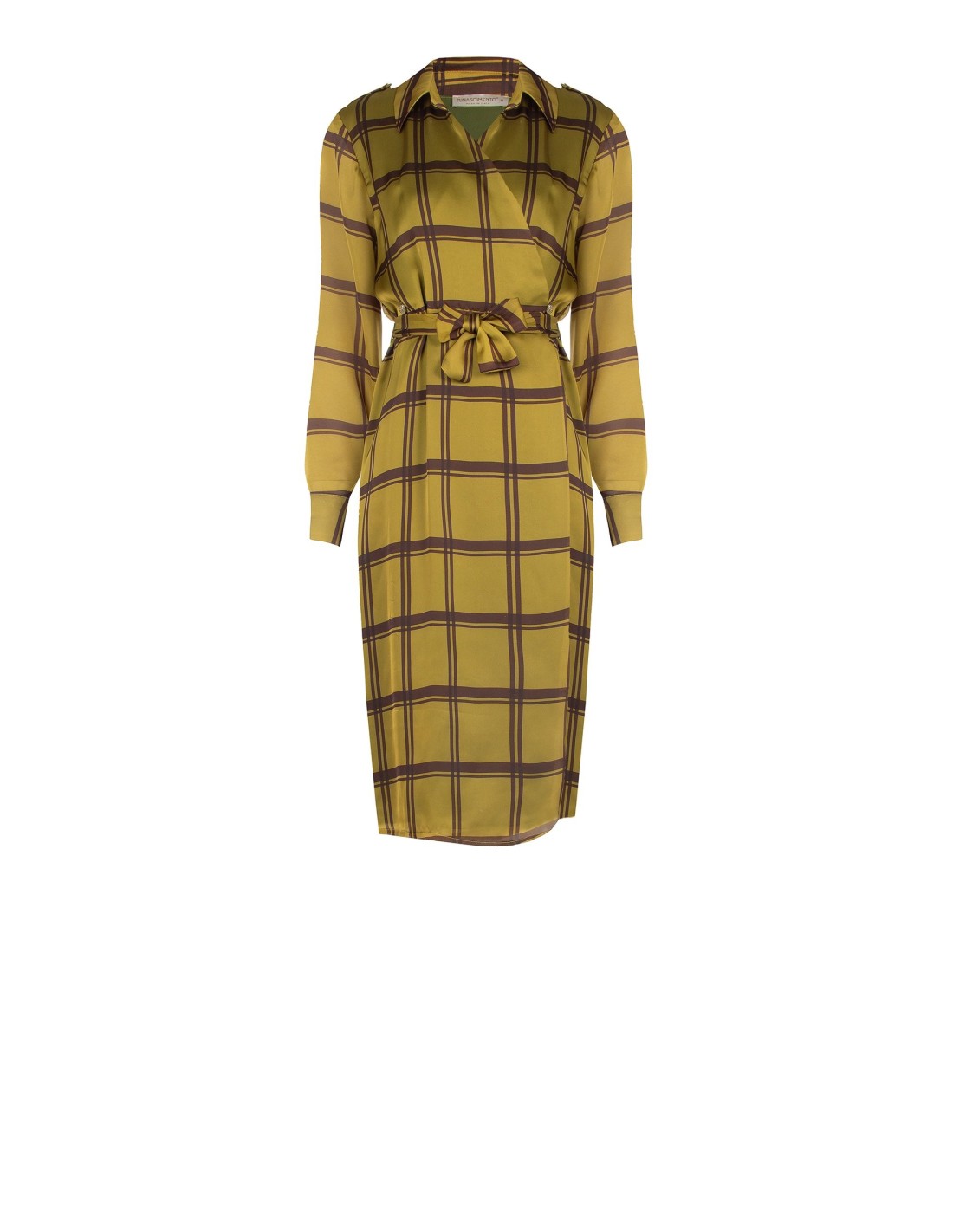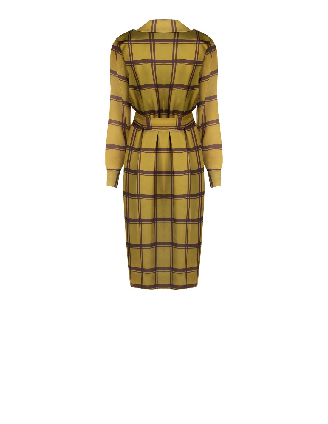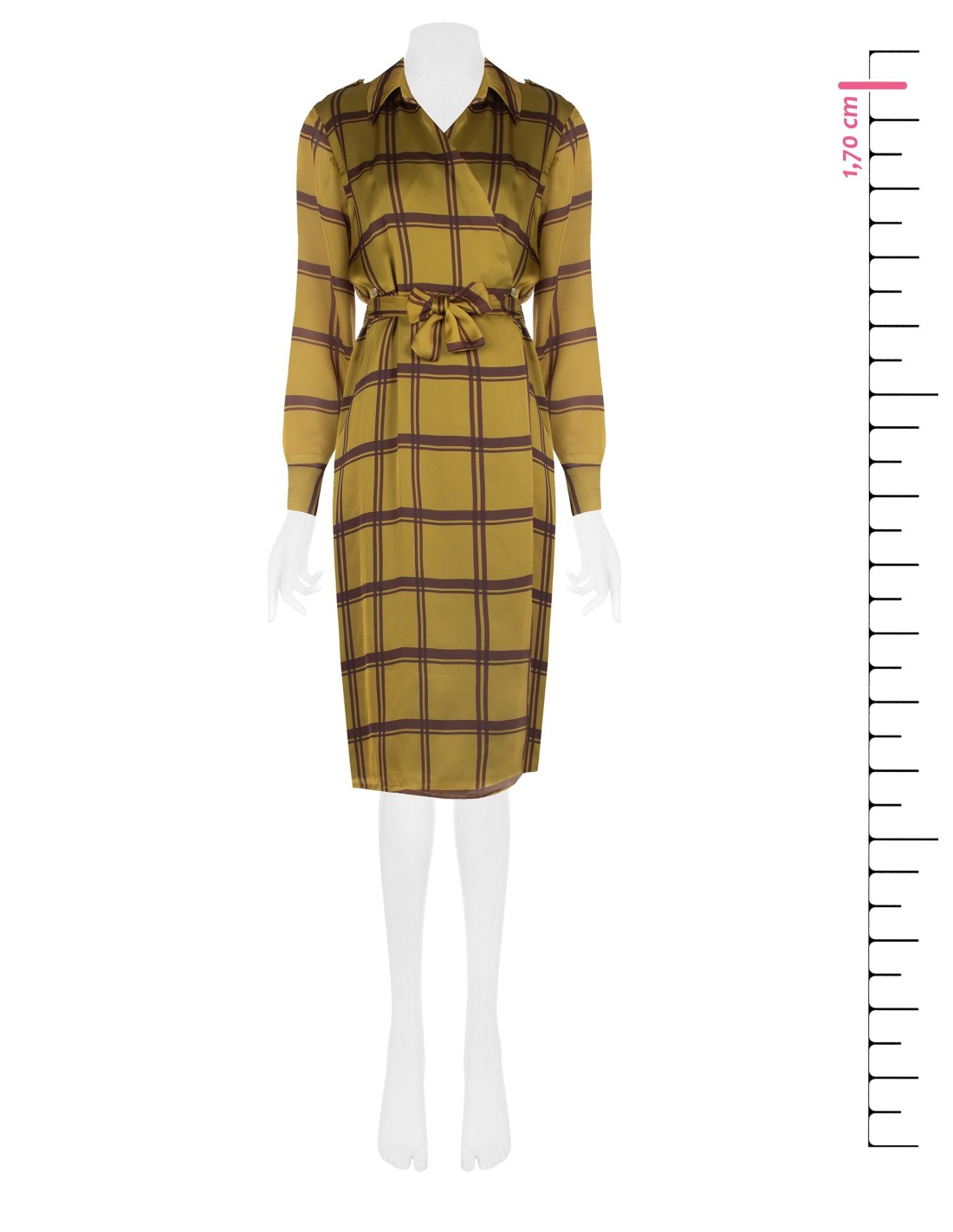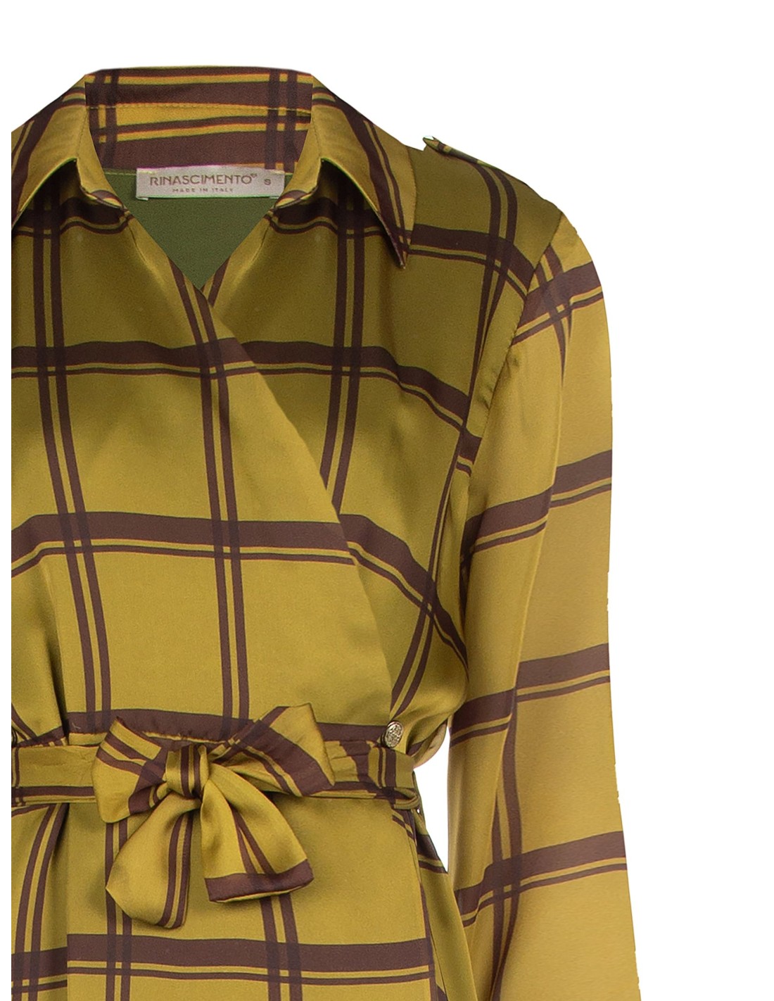 Chemisier midi com corte suave que define a cintura com cinto coordenado. Tecido fluido com efeito seda, agradável na pele e fácil de vestir durante todo o dia. Decote cruzado com colarinho e botões tipo joia nos ombros. Perfeito para o escritório, também ideal para um aperitivo. Rinascimento.