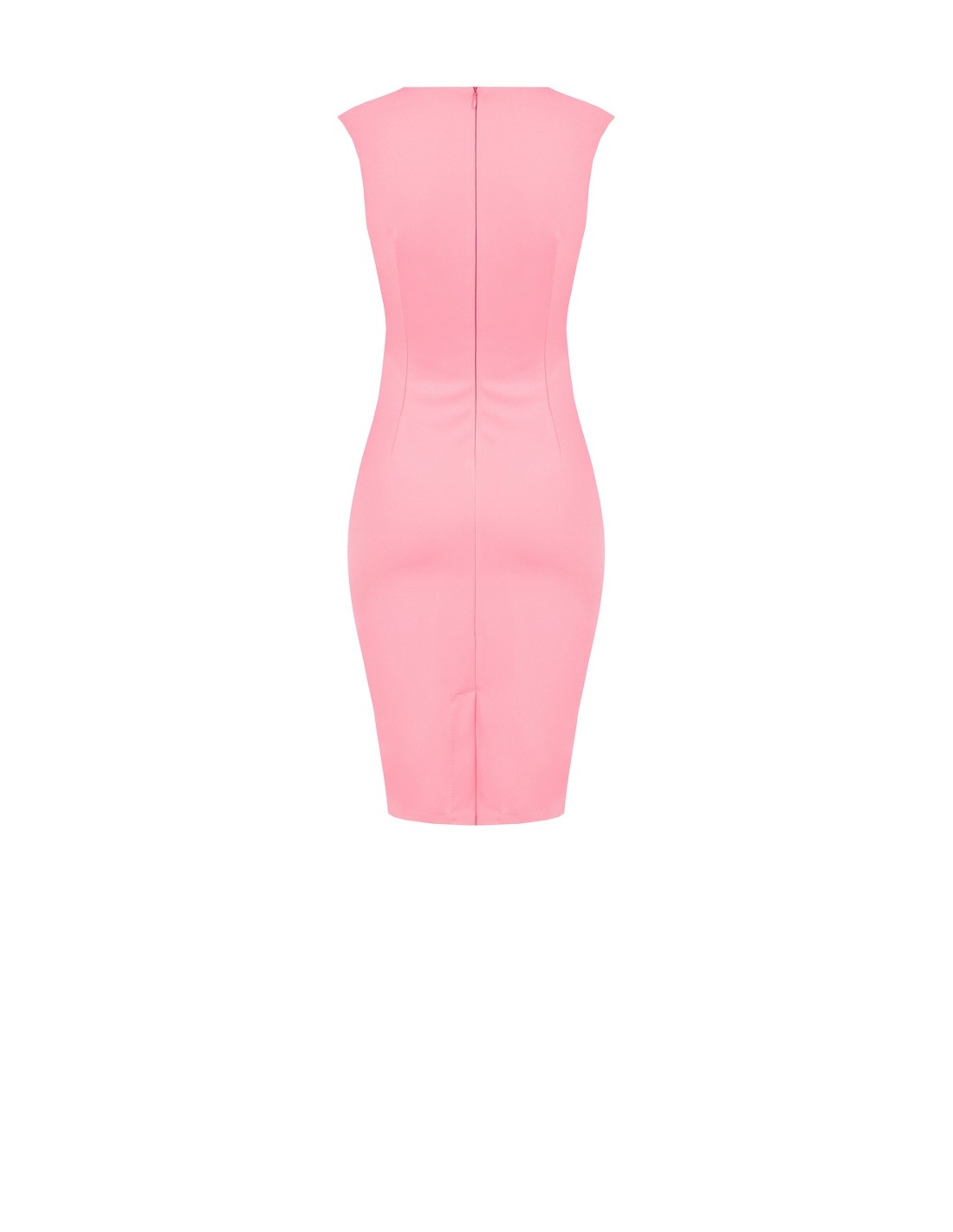Tubinho de corte justo em tecido técnico elástico, liso e confortável. Drapeado lateral que afina a cintura, decote redondo com suaves pregas e fecho invisível nas costas. Perfeito do escritório ao aperitivo e para ocasiões especiais.