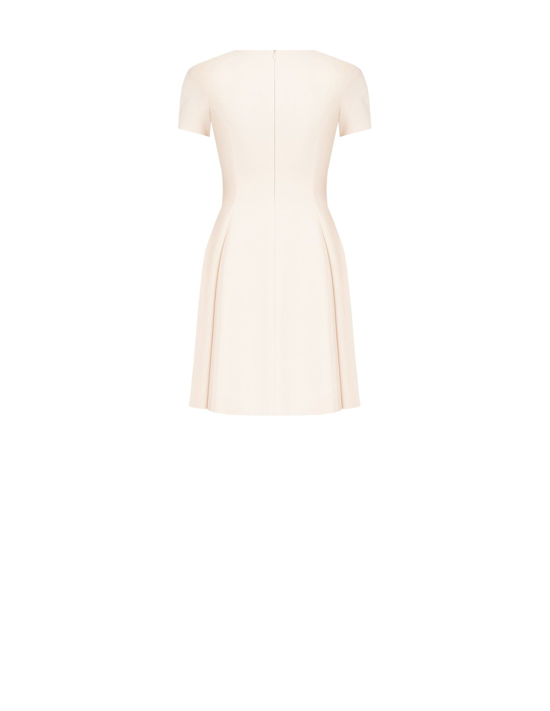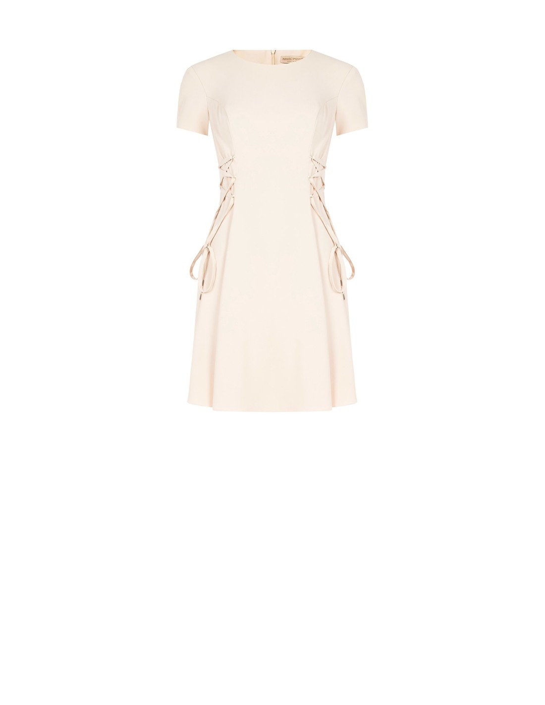 Corte evasé e ajuste suave que valoriza a cintura graças aos românticos cordões laterais. Confeccionado em tecido fluido e ligeiramente estruturado, com decote redondo e fecho invisível na parte de trás, é a escolha versátil para o escritório, os aperitivos e os eventos especiais.