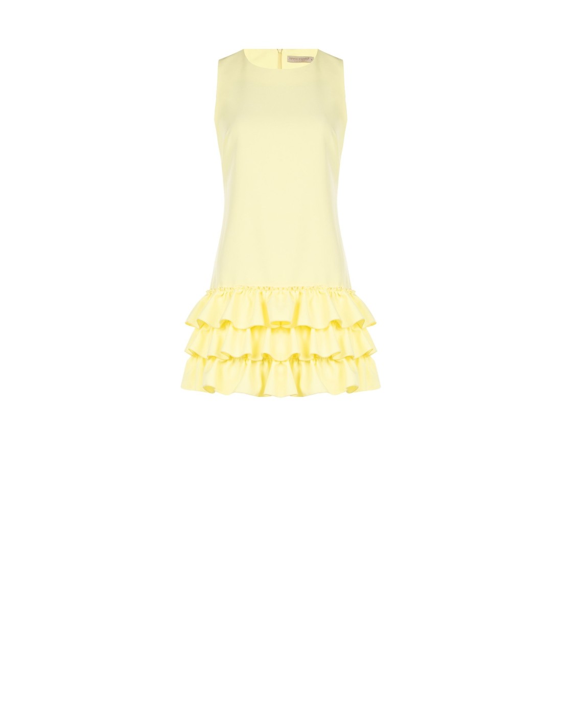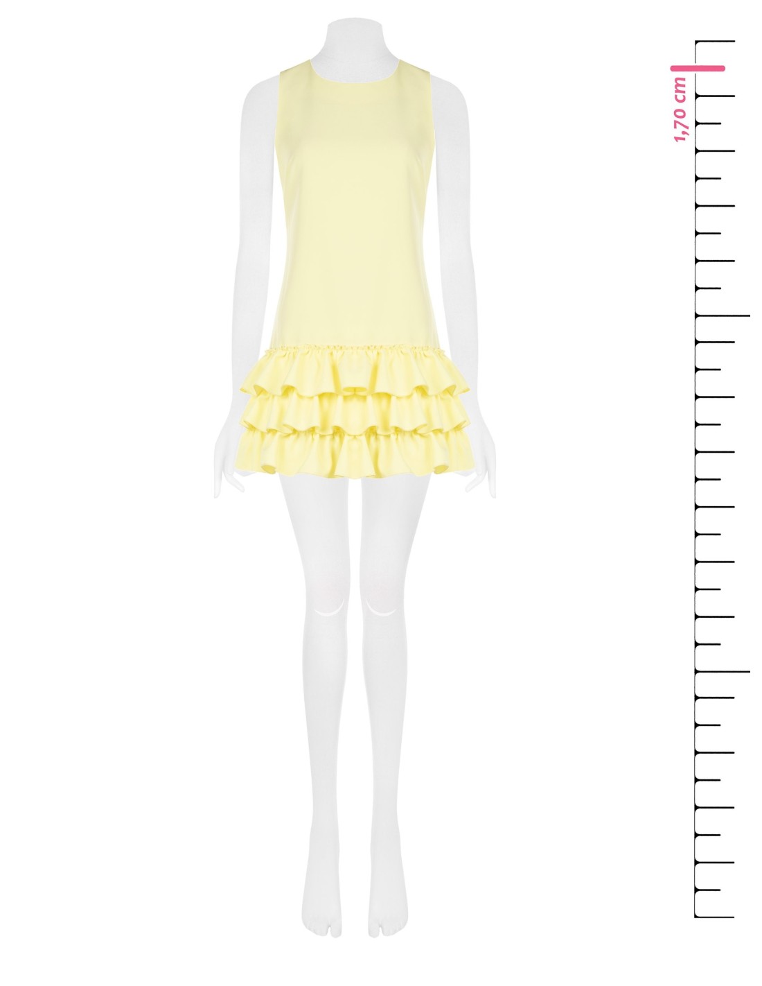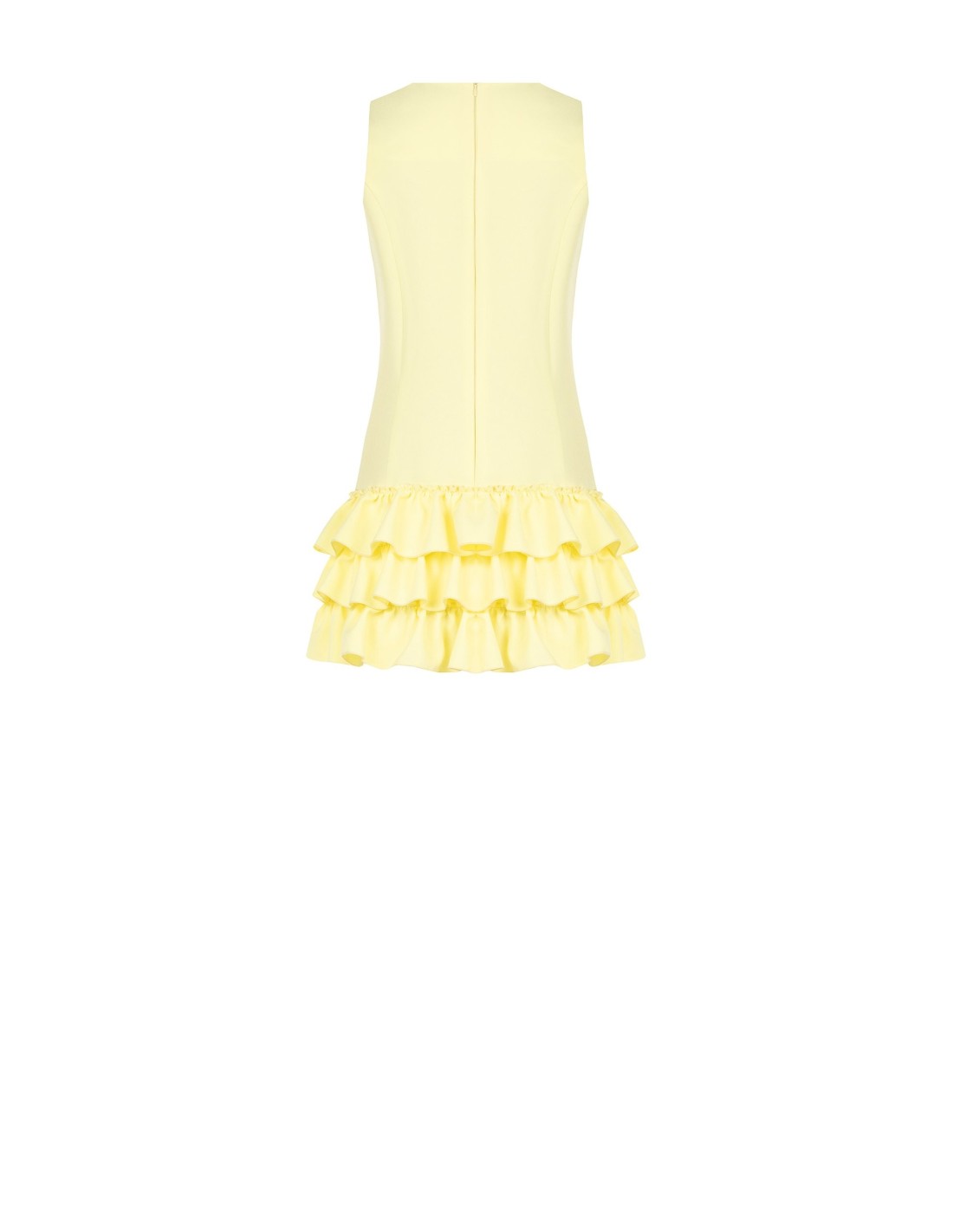 Mini de corte reto e ajuste confortável, em tecido compacto de toque macio que acompanha a silhueta sem marcar. O decote redondo e os folhos volumosos na bainha acrescentam movimento e feminilidade. Perfeito para festas, cerimónias e ocasiões especiais.