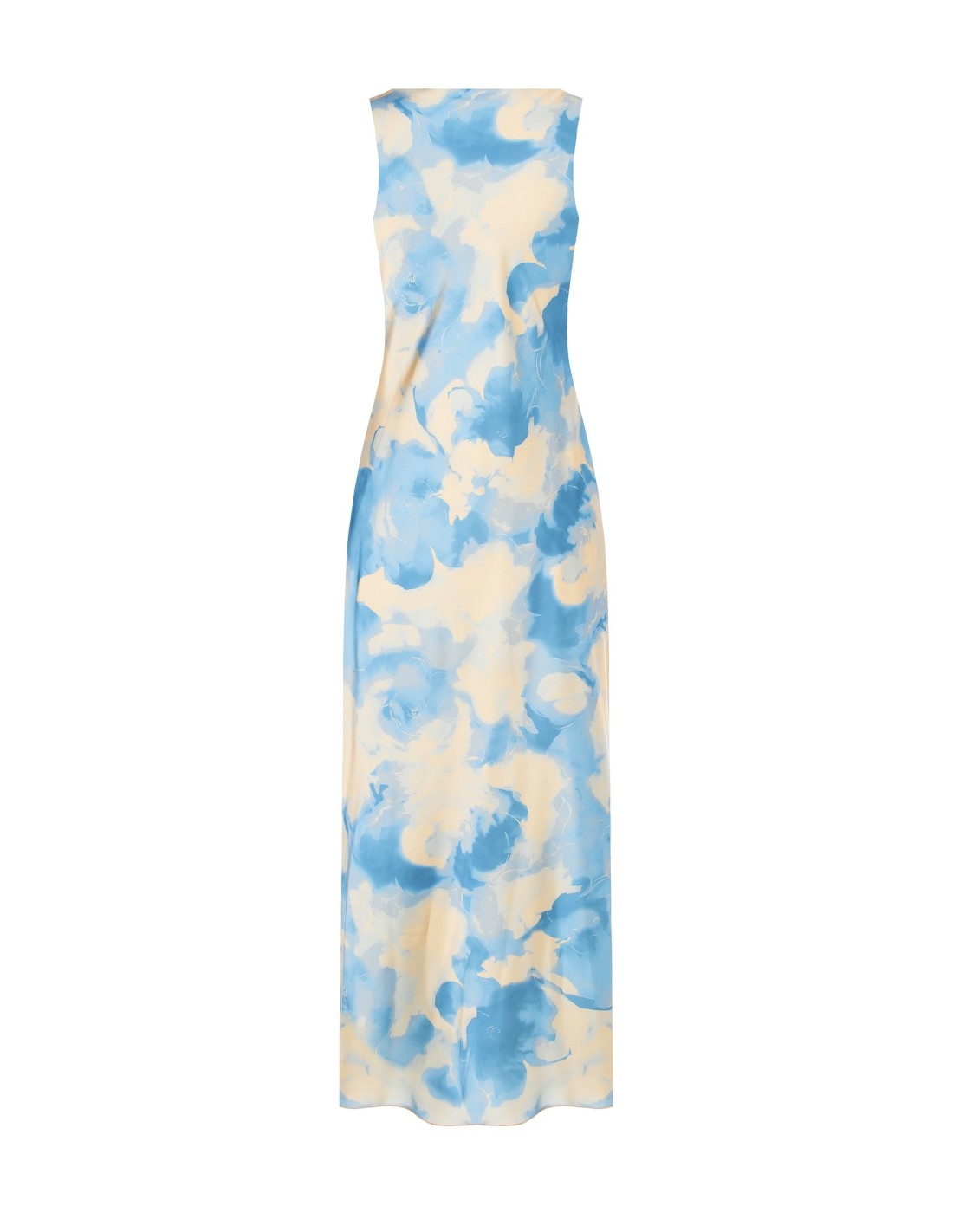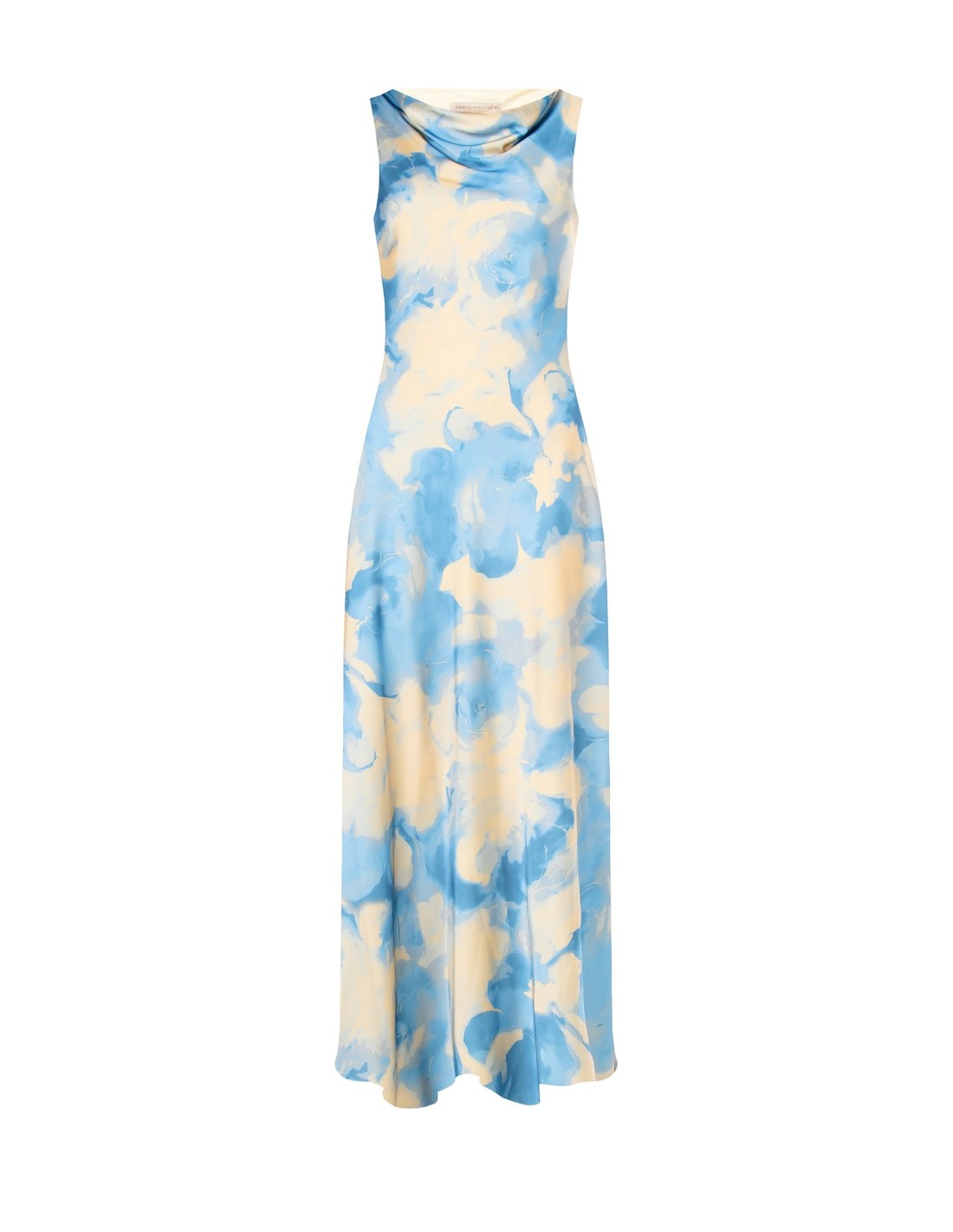 Silhueta suave que segue as linhas sem marcar, em raso leve com efeito sedoso. O decote em cascata valoriza o decote, enquanto o padrão floral esbatido confere movimento. Perfeito para cerimónias, festas de verão e jantares elegantes ao pôr do sol.