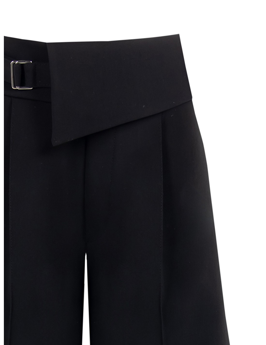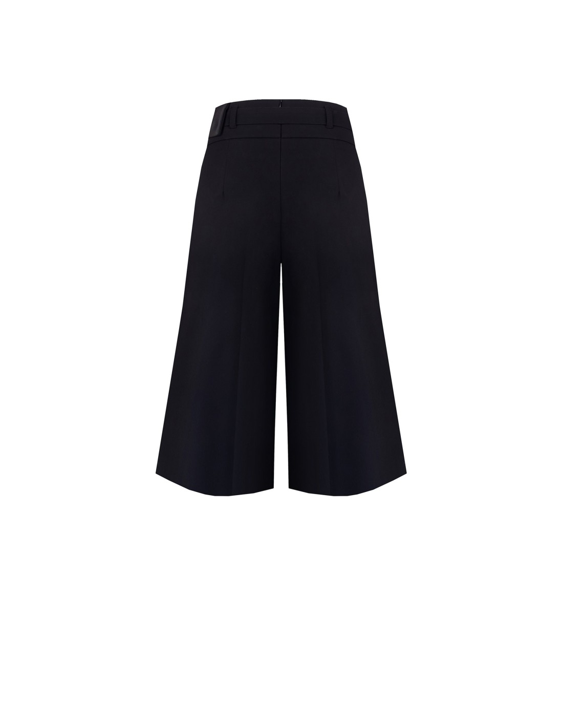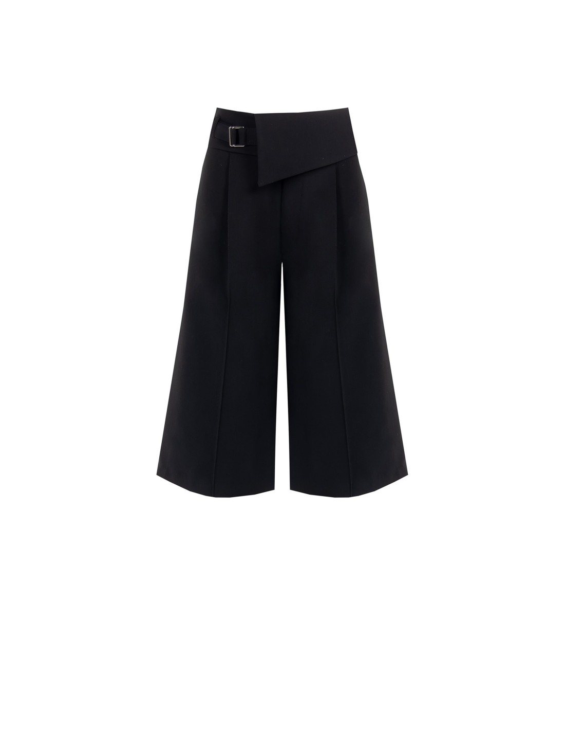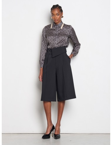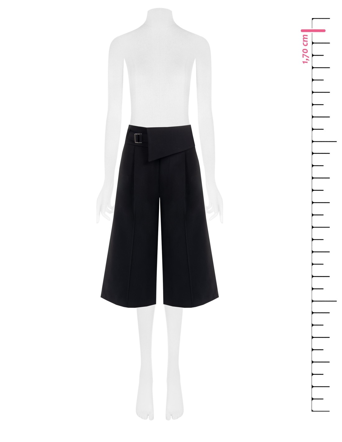 Shorts largos de cintura alta, corte macio que alonga a silhueta. Confeccionados em tecido fluido e compacto, garantem conforto e estrutura. Cintura assimétrica com fivela e pinças frontais definem o ponto da cintura. Ideais para o escritório com blazer ou para um aperitivo com sandálias e top.