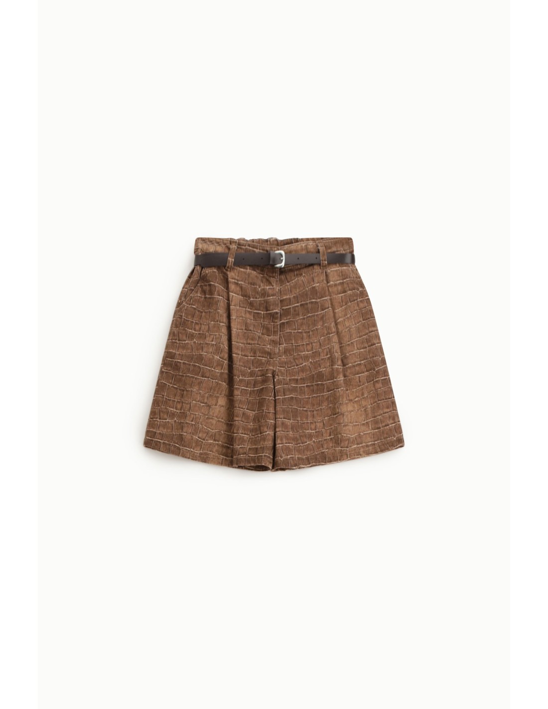 Bermuda Com Cinto E Estampado Efeito Crocodilo Por Favor