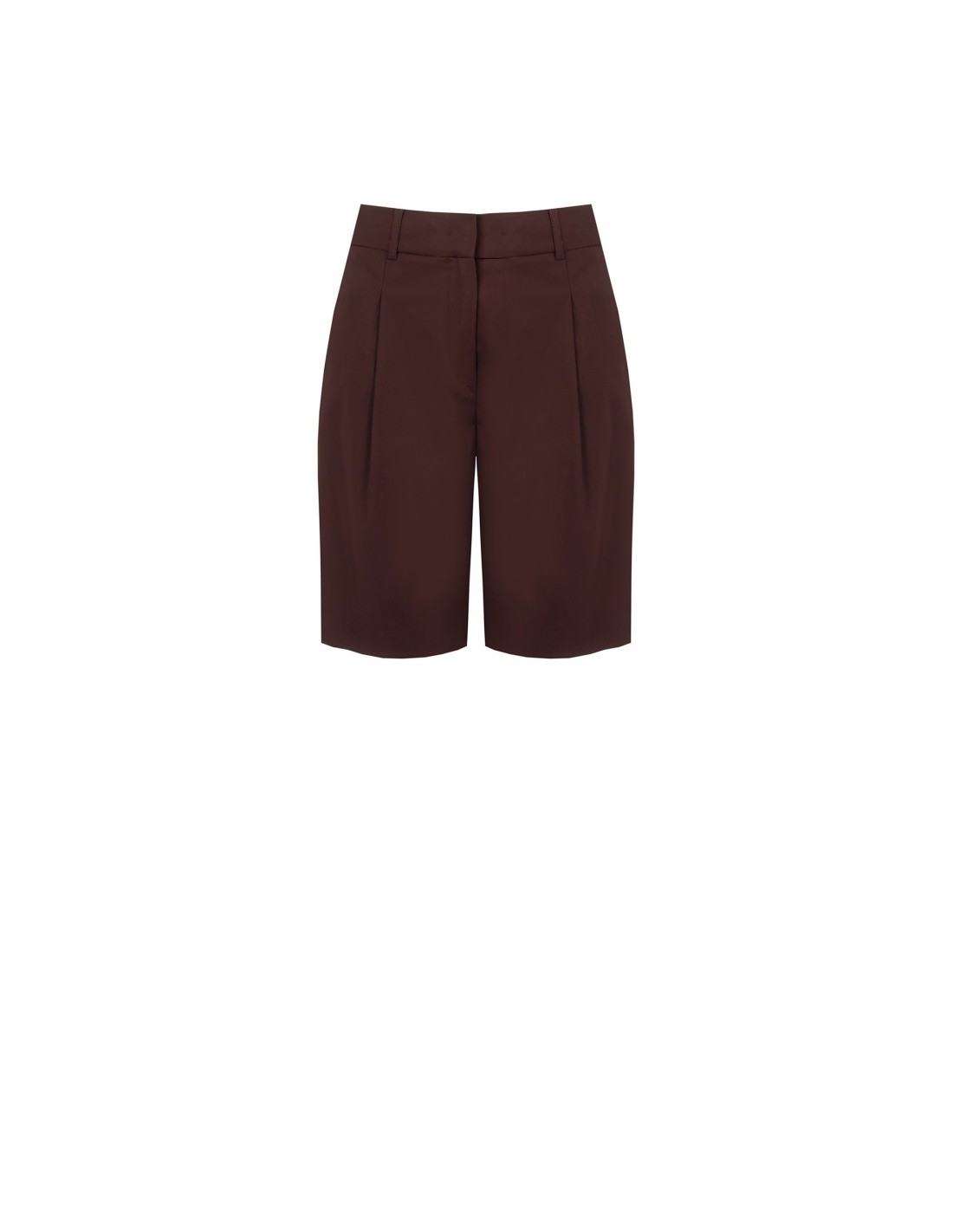 Calça curta com corte sartorial e ligeiramente macia, em mistura de algodão elástico com textura lisa e confortável. As pregas frontais e a cintura com passantes valorizam a silhueta com naturalidade. Perfeita para o escritório, para o tempo livre e para looks do dia a dia cuidados.