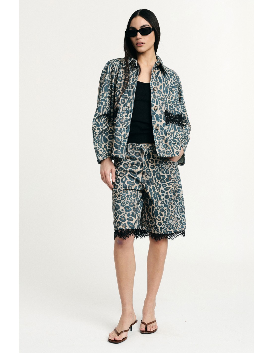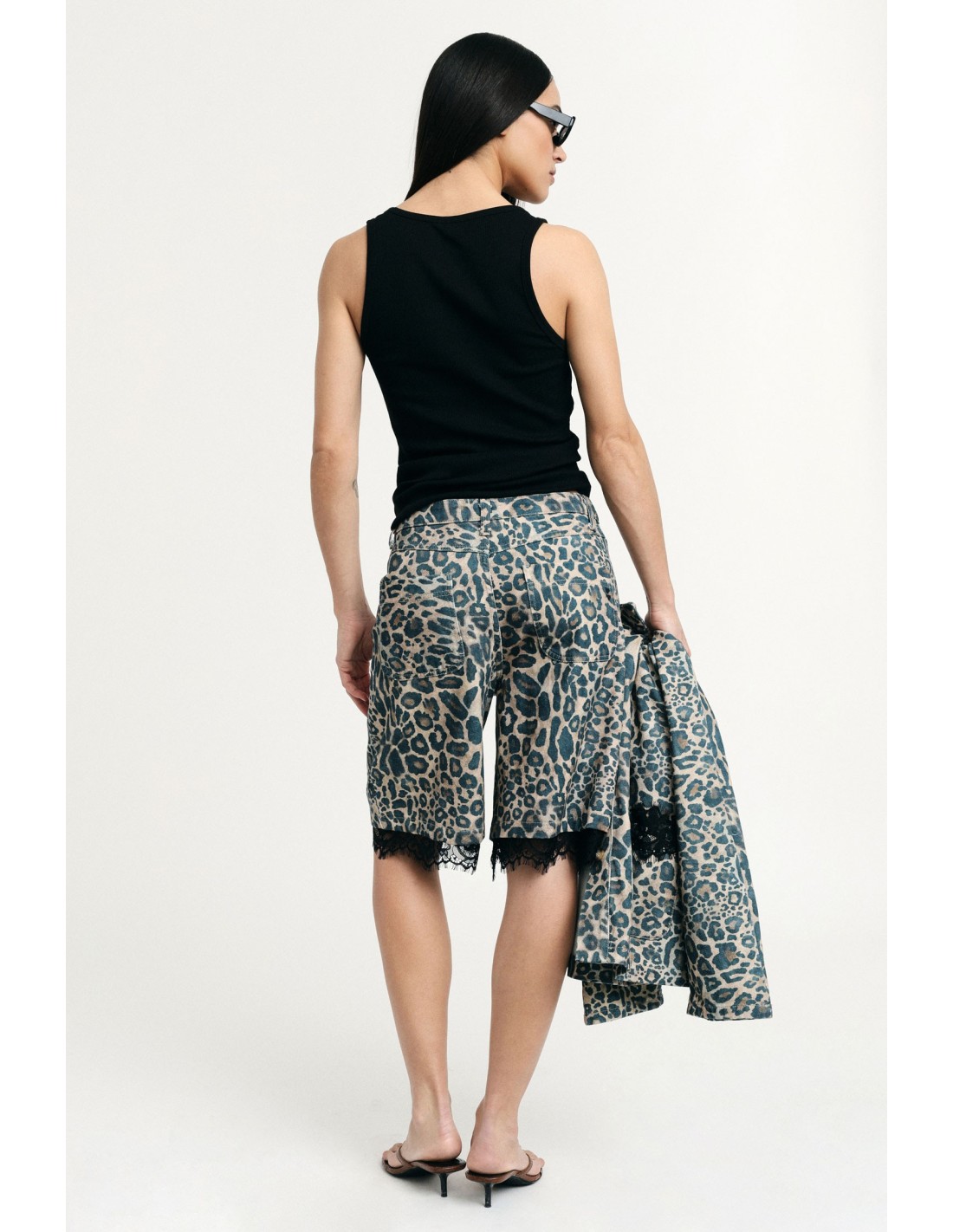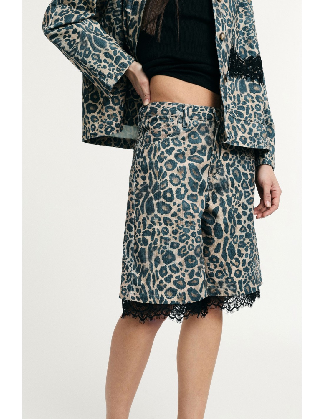 Bermudas de corte confortável com estampado animalier marcante e detalhes em renda na barra que acrescentam um toque fora do comum. Perfeitas para dar um twist aos seus looks do dia a dia, combinam facilmente com tops básicos e casacos para um look que se adapta a qualquer momento do dia.
