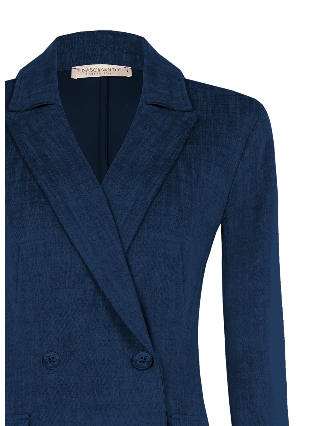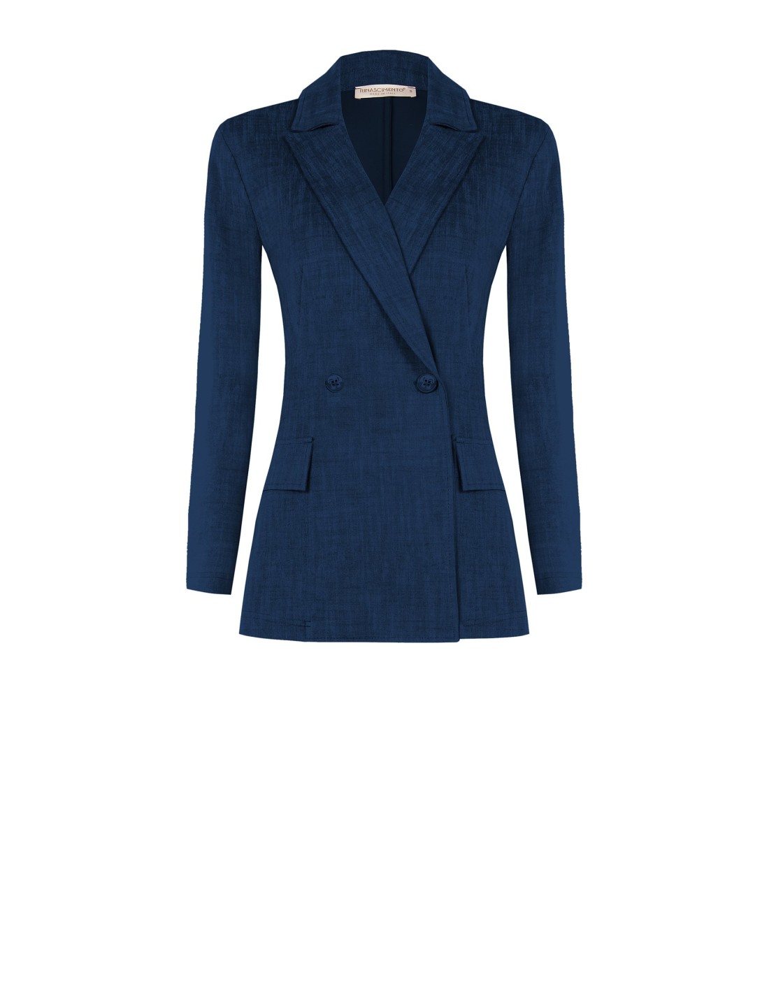 Blazer de duplo abotoamento com corte esguio e alongado, que afina a silhueta com conforto. Confeccionado em Punto Milano macio e ligeiramente estruturado. Lapelas clássicas, botões metálicos, bolsos com aba: detalhes que definem o look. Versátil do escritório ao aperitivo, complementa vestidos ou denim com elegância descontraída.