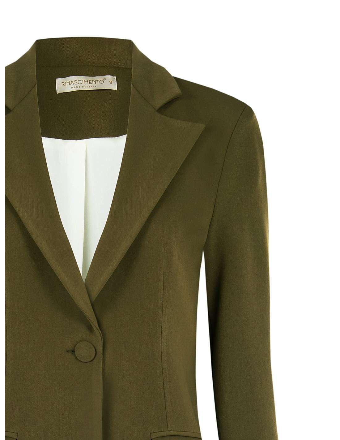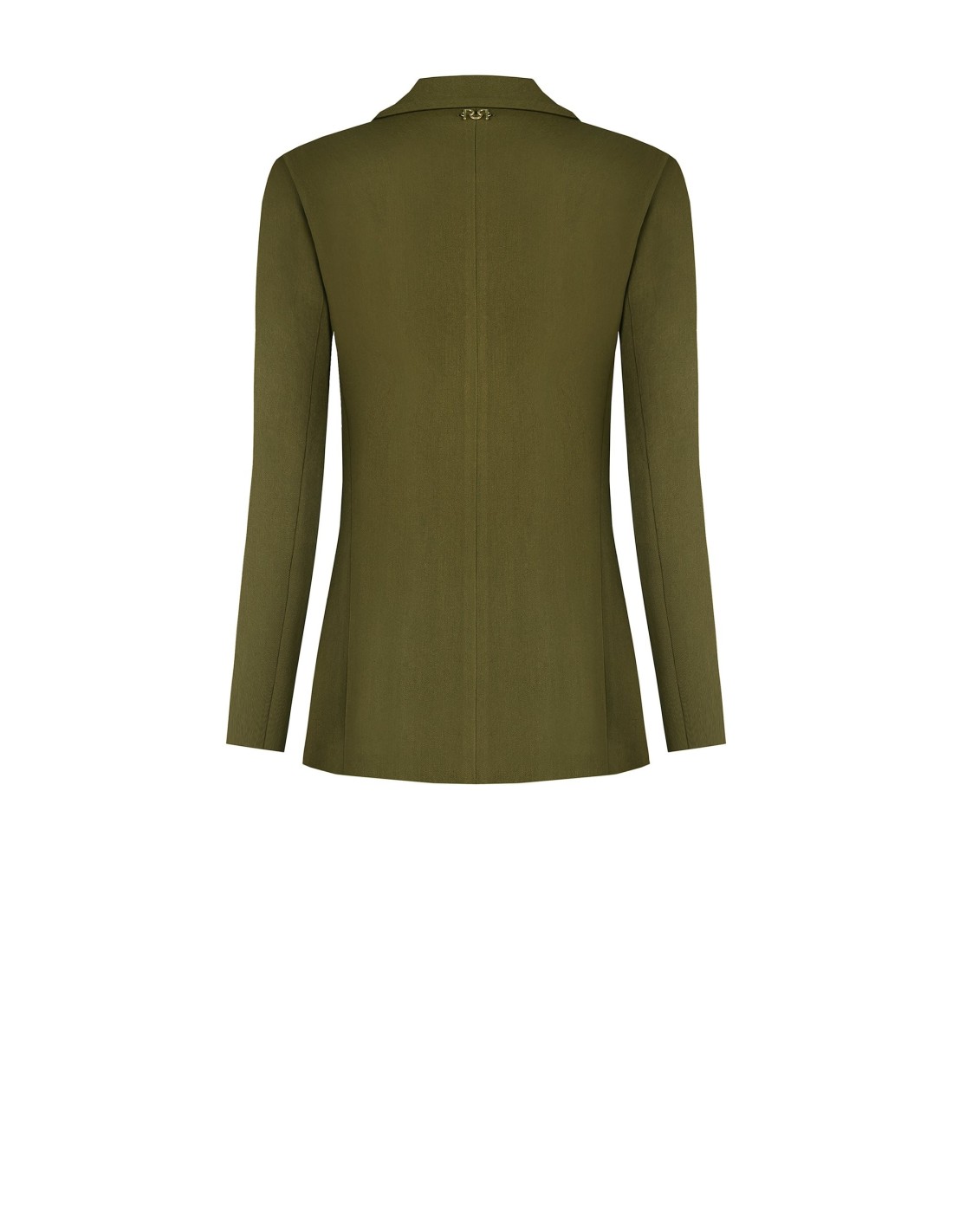 Com corte de alfaiataria e fit justo, esta peça em tecido técnico de toque fluido acompanha os movimentos e define a silhueta. A lapela pronunciada e o fecho com botão forrado adicionam carácter. Perfeita para o escritório, versátil também para o dia a dia mais cuidado.
