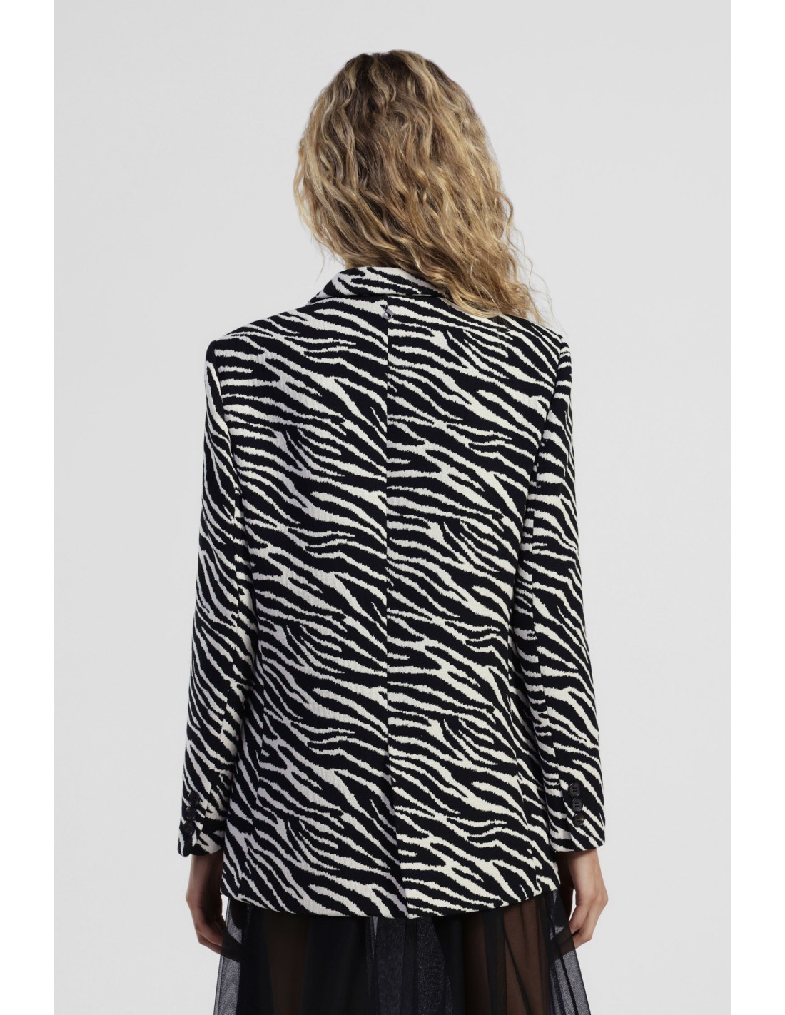 Perfeito para quem gosta de se destacar todos os dias, este blazer apresenta um padrão de zebra que confere carácter até ao look mais simples. Os bolsos de remendo à frente dão um toque prático, enquanto o corte regular o torna ideal para combinar com calças de ganga e calças de alfaiataria.