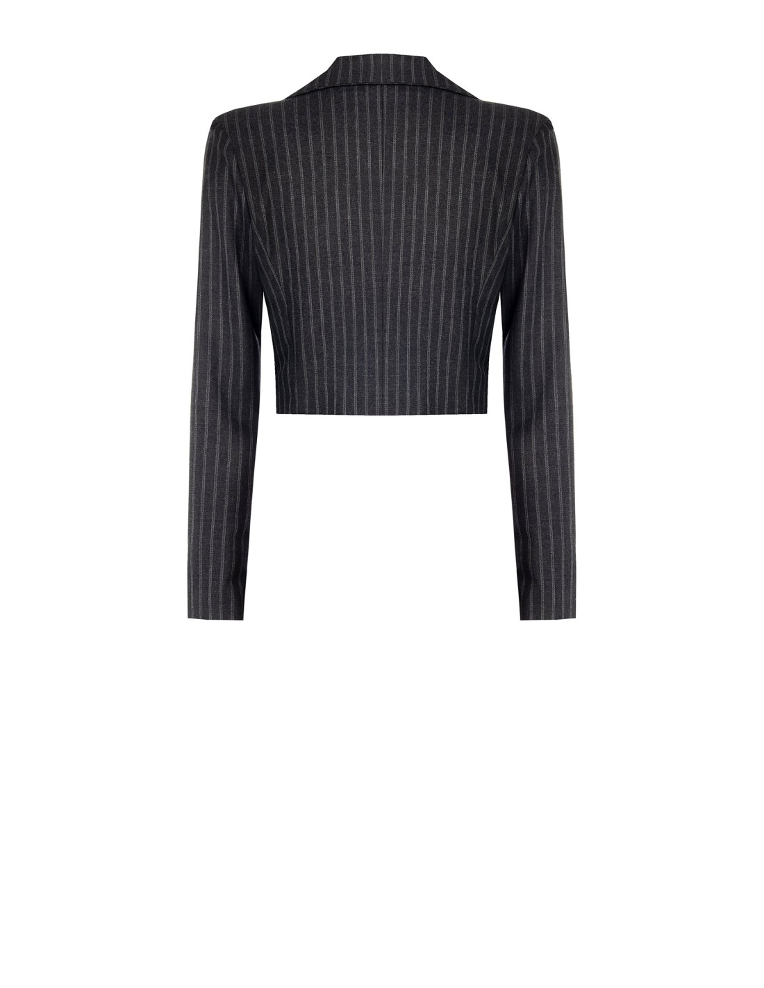 Blazer Cropped em Tecido Risca-de-Giz Rinascimento