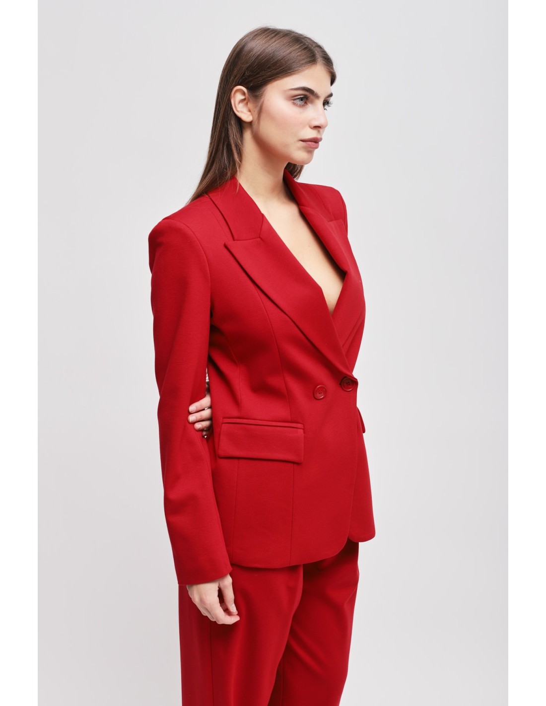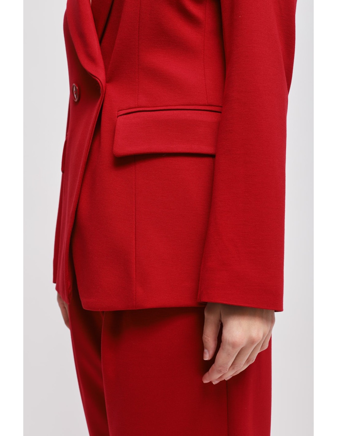 Maryley assina um casaco com corte justo mas confortável em ponto Milano, macio e estruturado para valorizar a silhueta. Lapela em bico, duplo abotoamento e bolsos com aba definem uma elegância contemporânea. Perfeito para o escritório e ocasiões formais, adapta‑se também ao look do dia com jeans ou calças fluidas.
