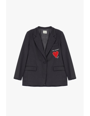 Deixe-se surpreender pelo carácter original deste blazer de um só peito, embelezado com um bordado em forma de coração e letras no peito. O corte clássico, com lapelas e bolsos com aba, adapta-se perfeitamente aos seus looks do dia a dia. Basta vesti-lo e sentir-se-á imediatamente única e pronta para novas aventuras.