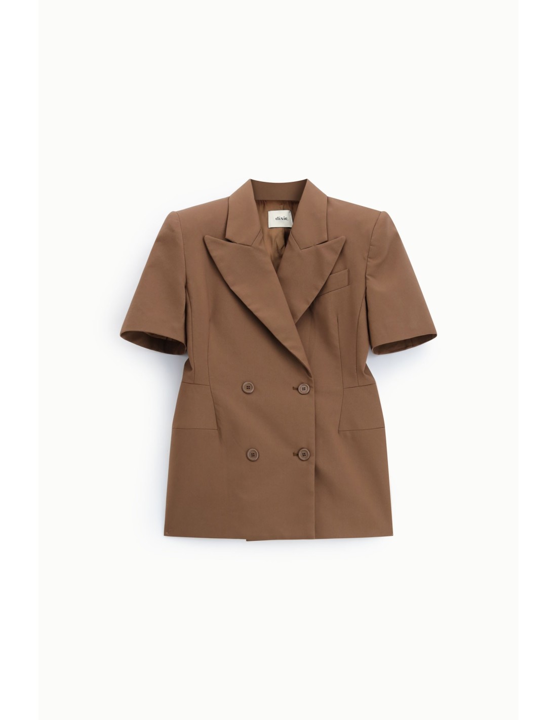 Blazer de duplo peito, de alfaiate, com mangas curtas