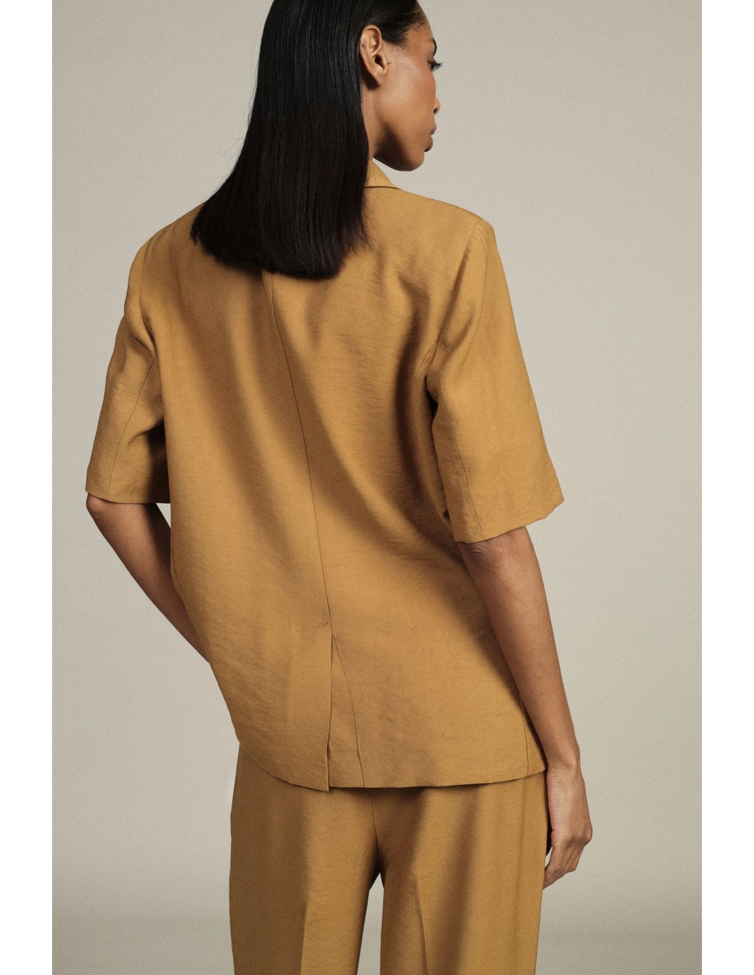 Blazer de abotoamento duplo, mangas curtas e bolsos