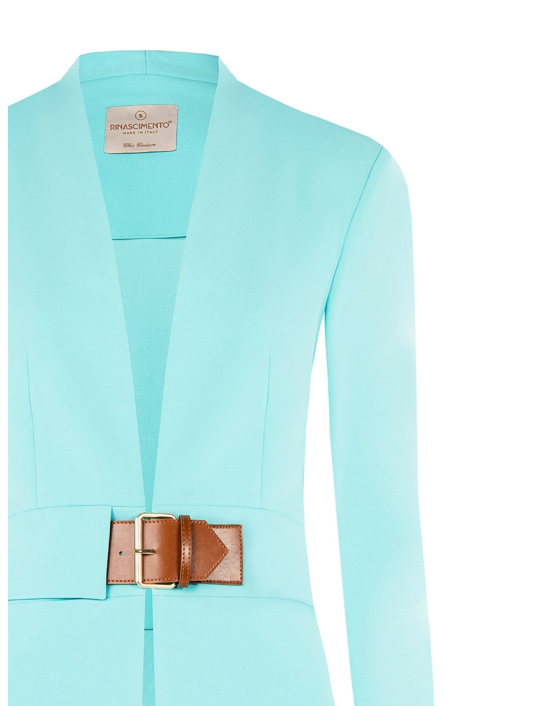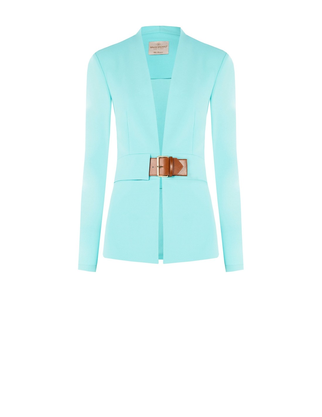 Blazer Em Scuba Crepe Sem Lapelas Com Cinto Em Pele Sintética Rinascimento