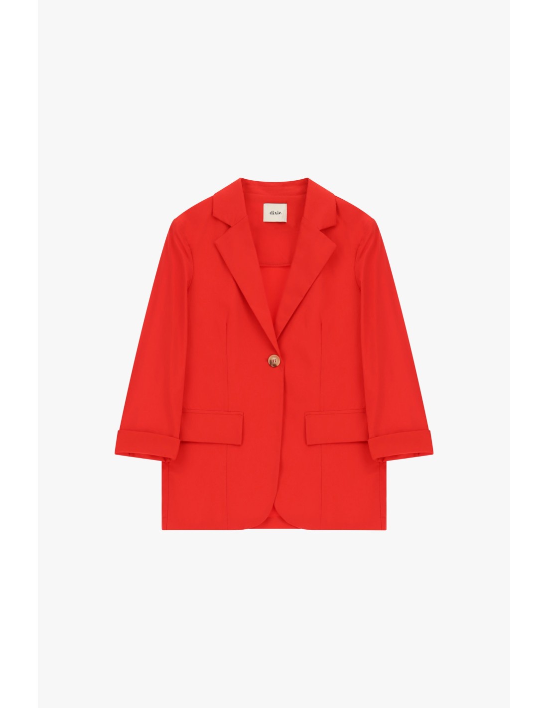 Blazer De Abotoamento Simples Com Mangas Viradas E Bolsos Dixie