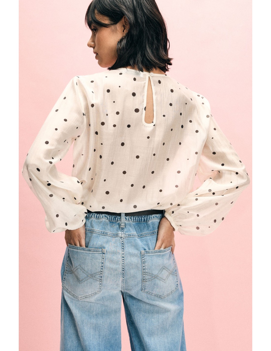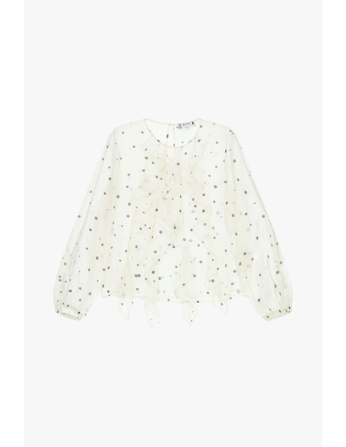 Blusa de bolinhas com folhos e mangas compridas Please