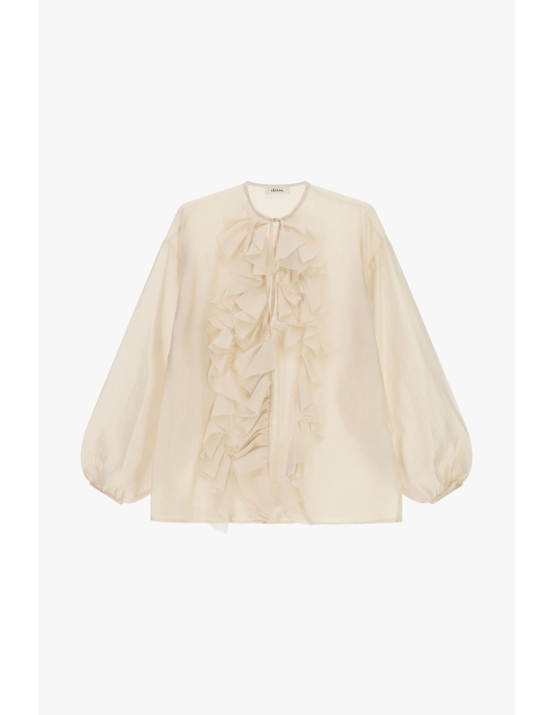 Blusa Ampla Com Mangas Compridas E Folhos Frontais Dixie