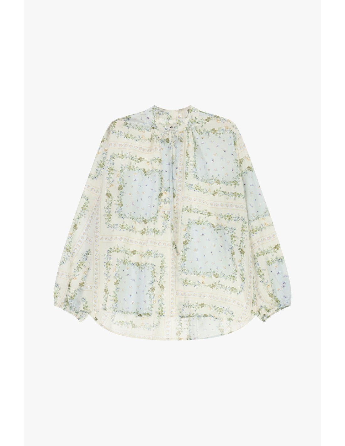 Esta blusa de corte fluido destaca-se pelo original estampado floral em quadrados e pelo detalhe do laço ao pescoço. Mangas largas e punhos elásticos proporcionam conforto e um toque romântico, ideal para dar vivacidade aos looks do dia a dia e sentir-se imediatamente à vontade com um estilo único.