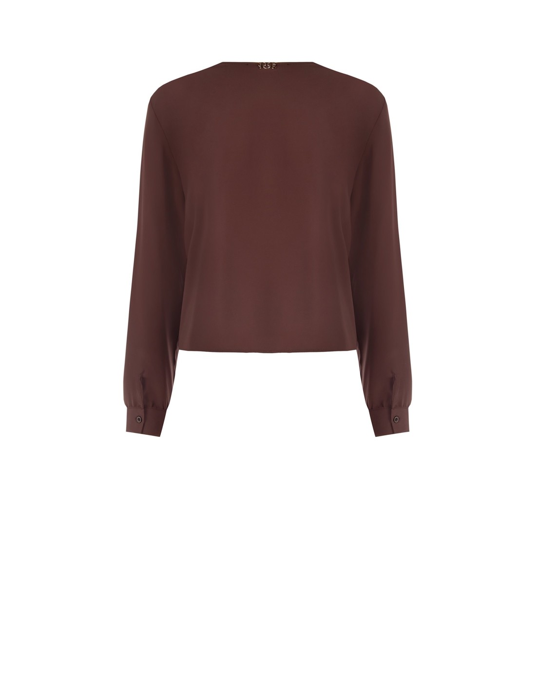 Top em cetim com linha suave e ligeiramente ampla, que envolve o corpo sem marcar. O decote em V alonga a silhueta, o fecho de botões oculto e os punhos com botão acrescentam limpeza e carácter. Perfeito com calças ou saias para o escritório e para uma elegância quotidiana.